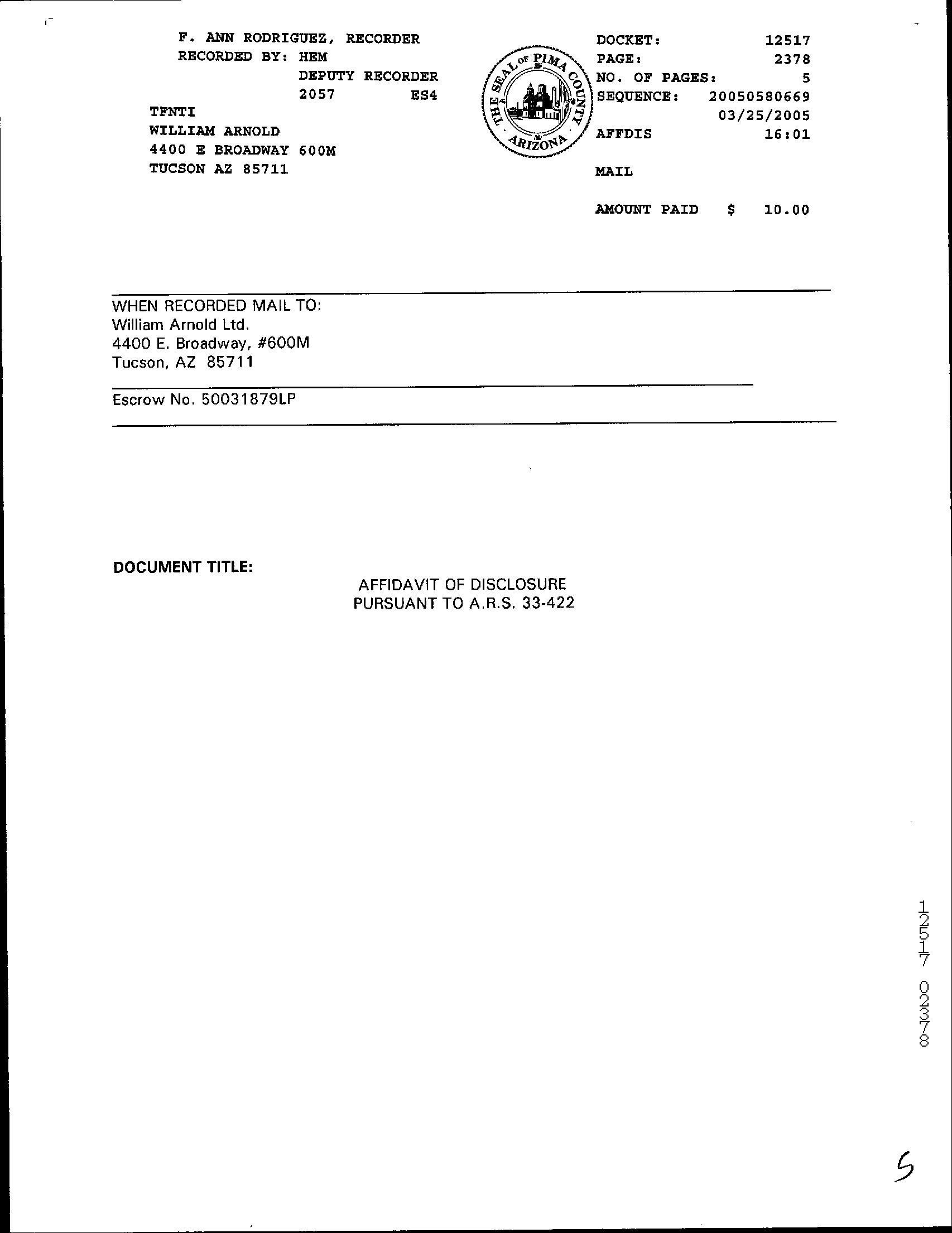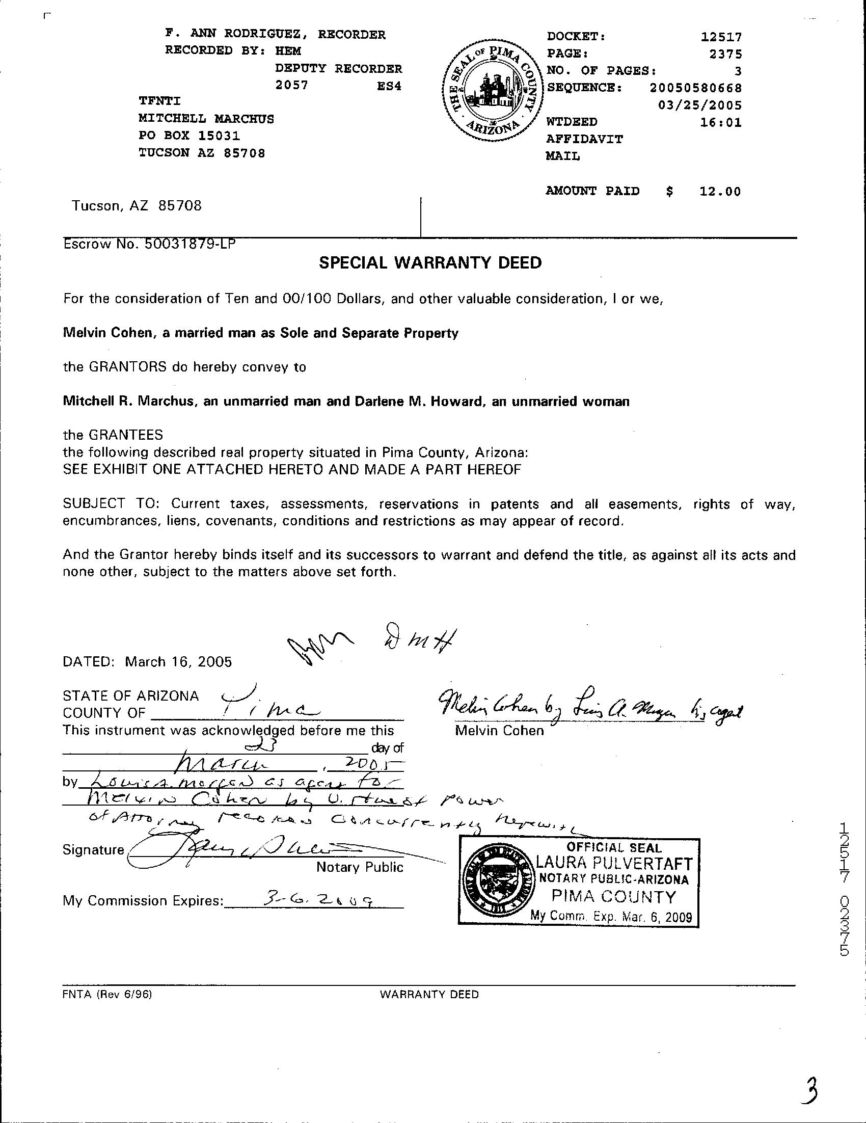 Recording/Sale Date : 03/25/2005 / 03/16/2005