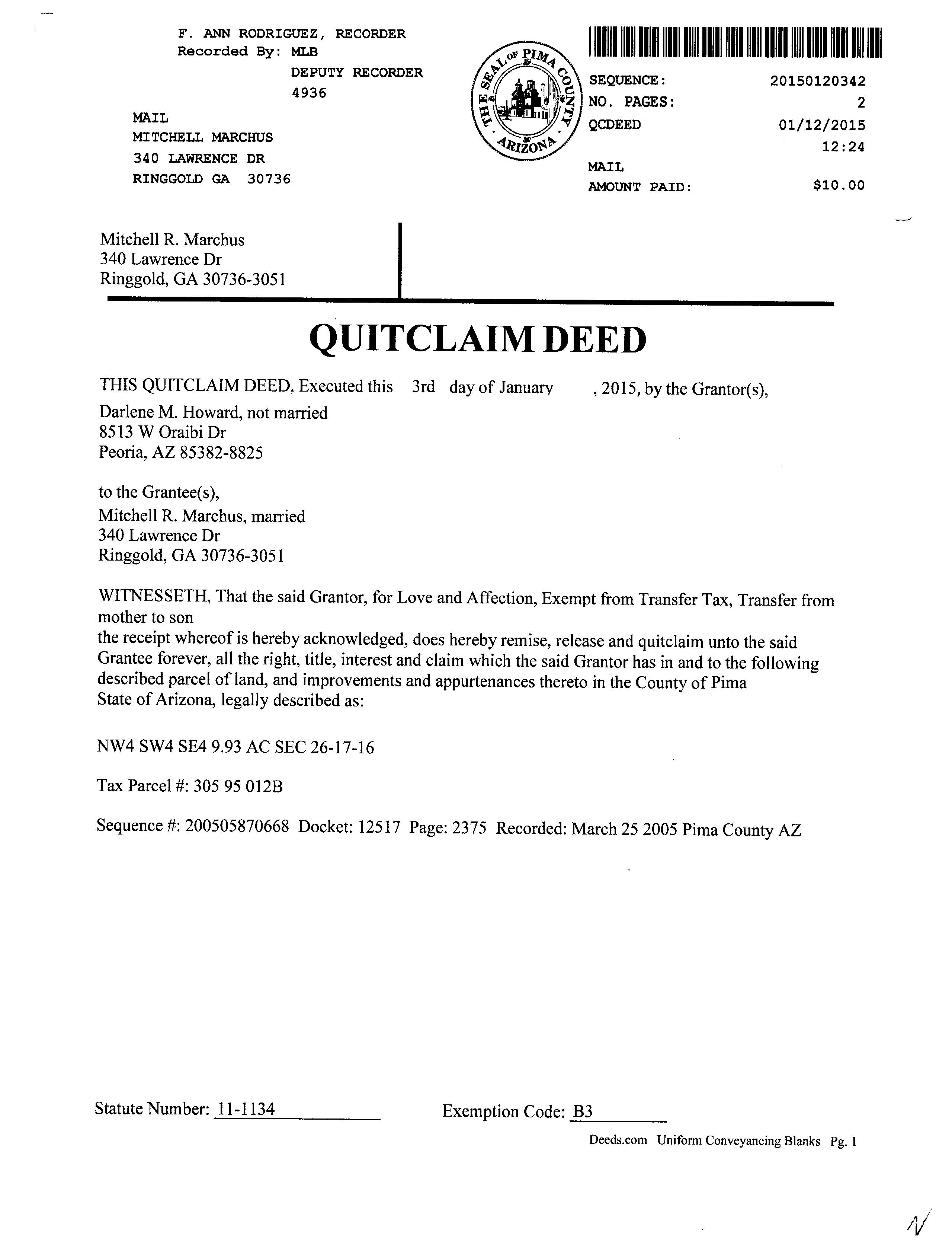 OWNER: MARCHUS MITCHELL R & HOWARD DARLENE M JT/RS
