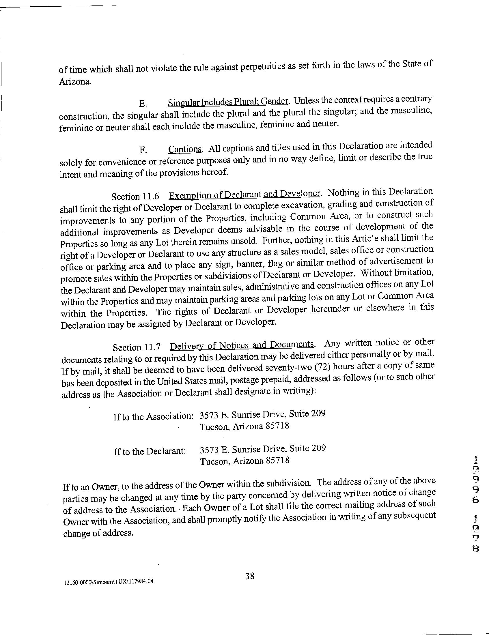 Mailing Address : 1860 W River Otter Dr, Tucson AZ 85704-1755 C027