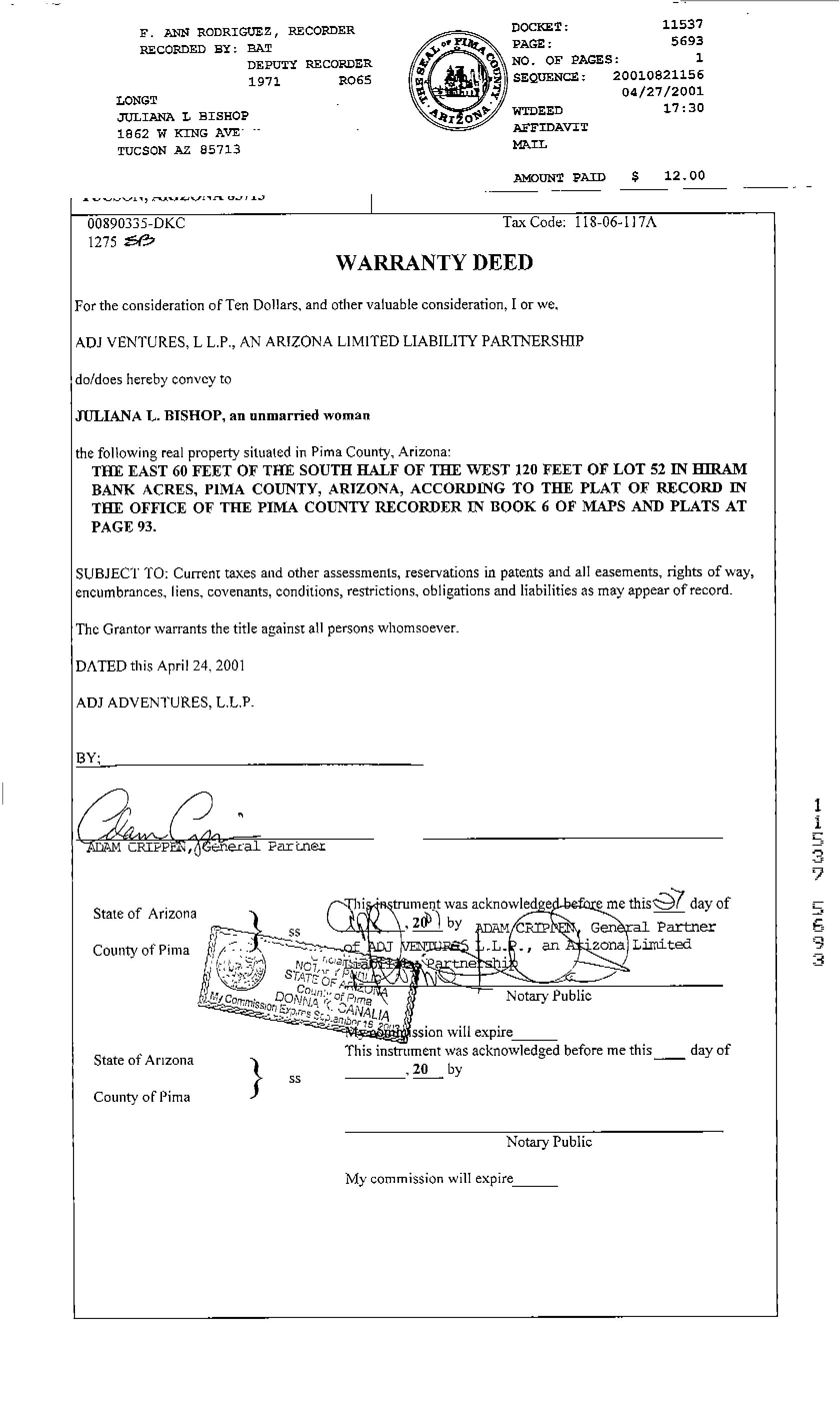 / Alternate APN: 118-06-2730 / Deed Type: Warranty Deed