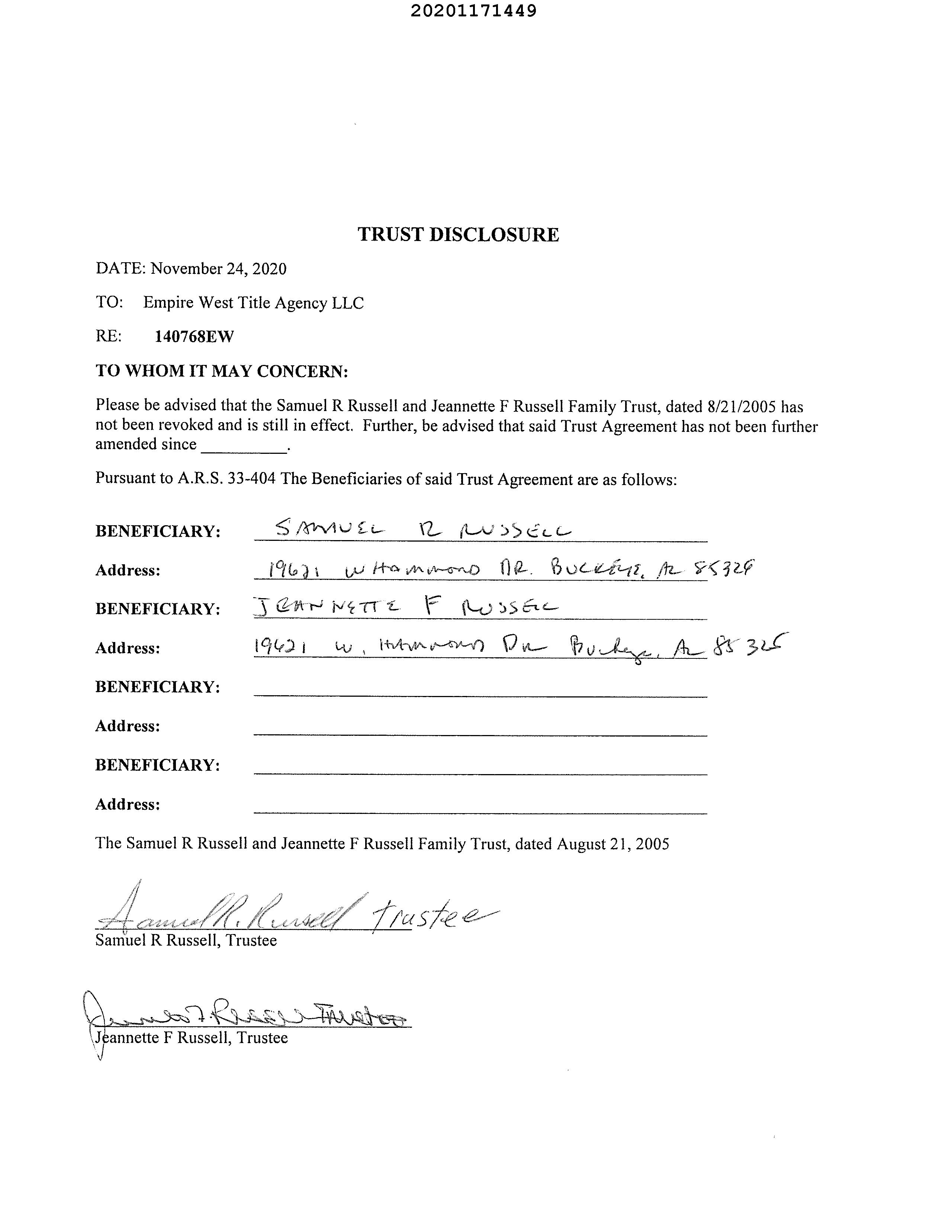 Mailing Address : 19621 W Hammond Dr, Buckeye AZ 85326-6635 R010