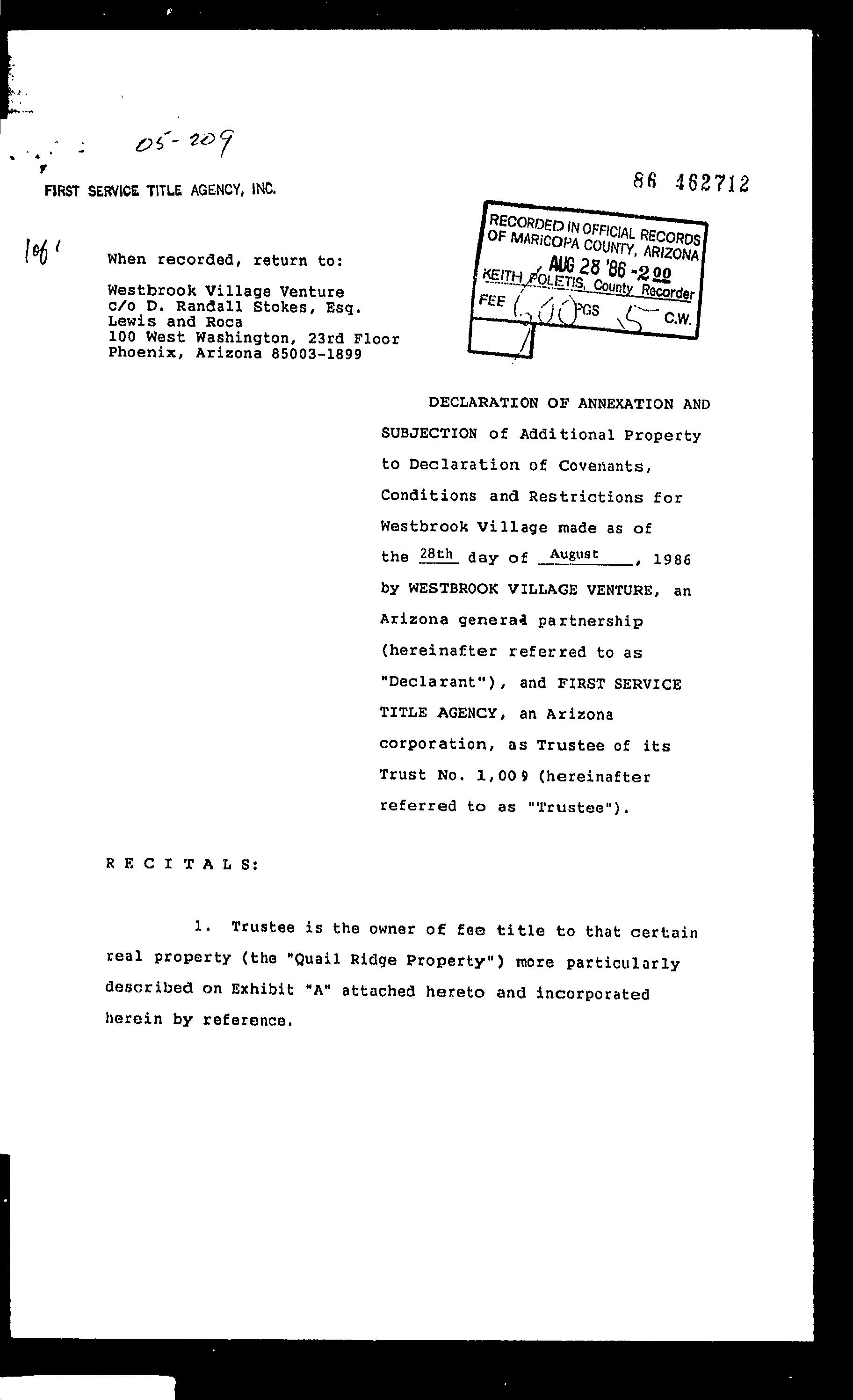 MARICOPA, AZ Document:RES 1986.462712 Page:1 of 5 Printed on:6/6/2024 9:33 AM Branch :FC0 User :JSTI