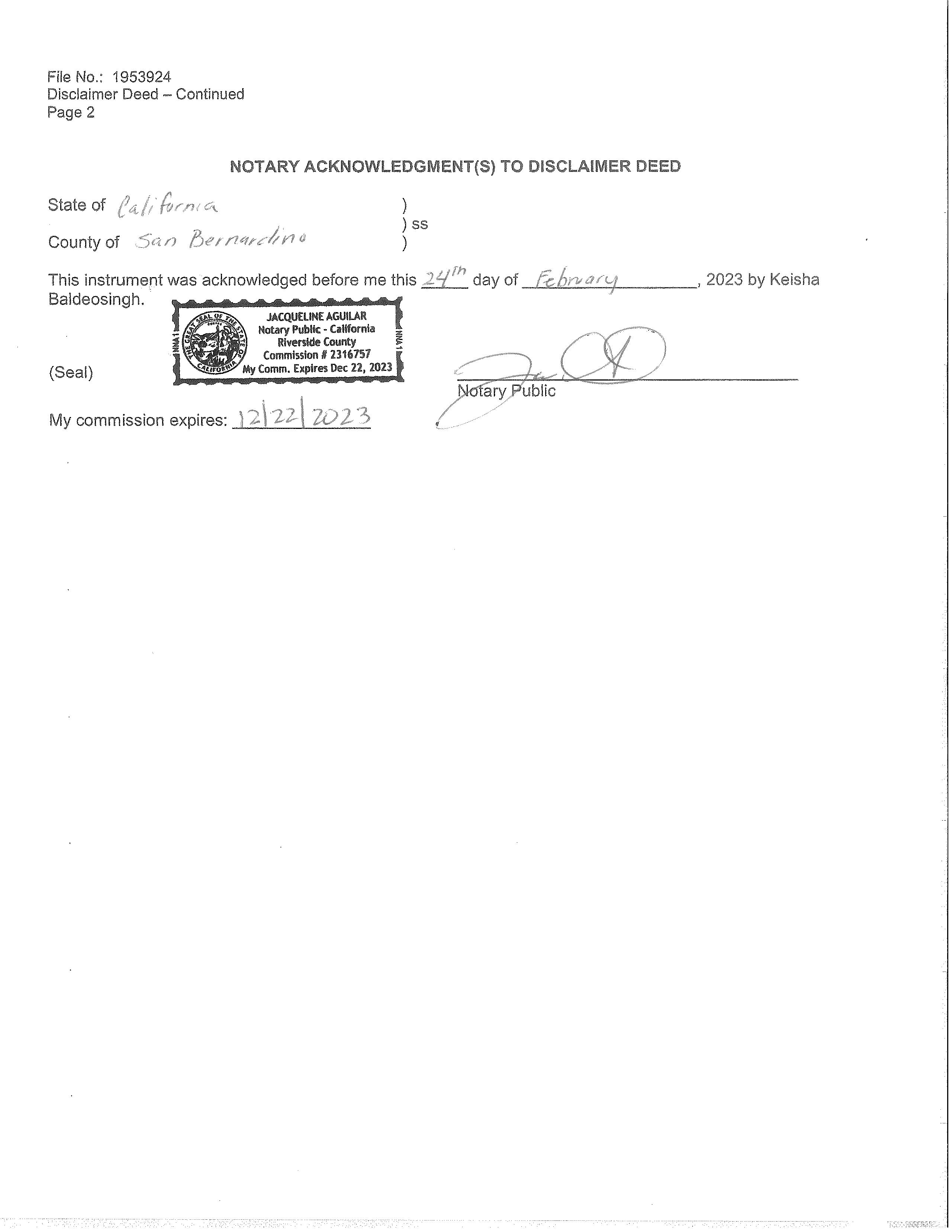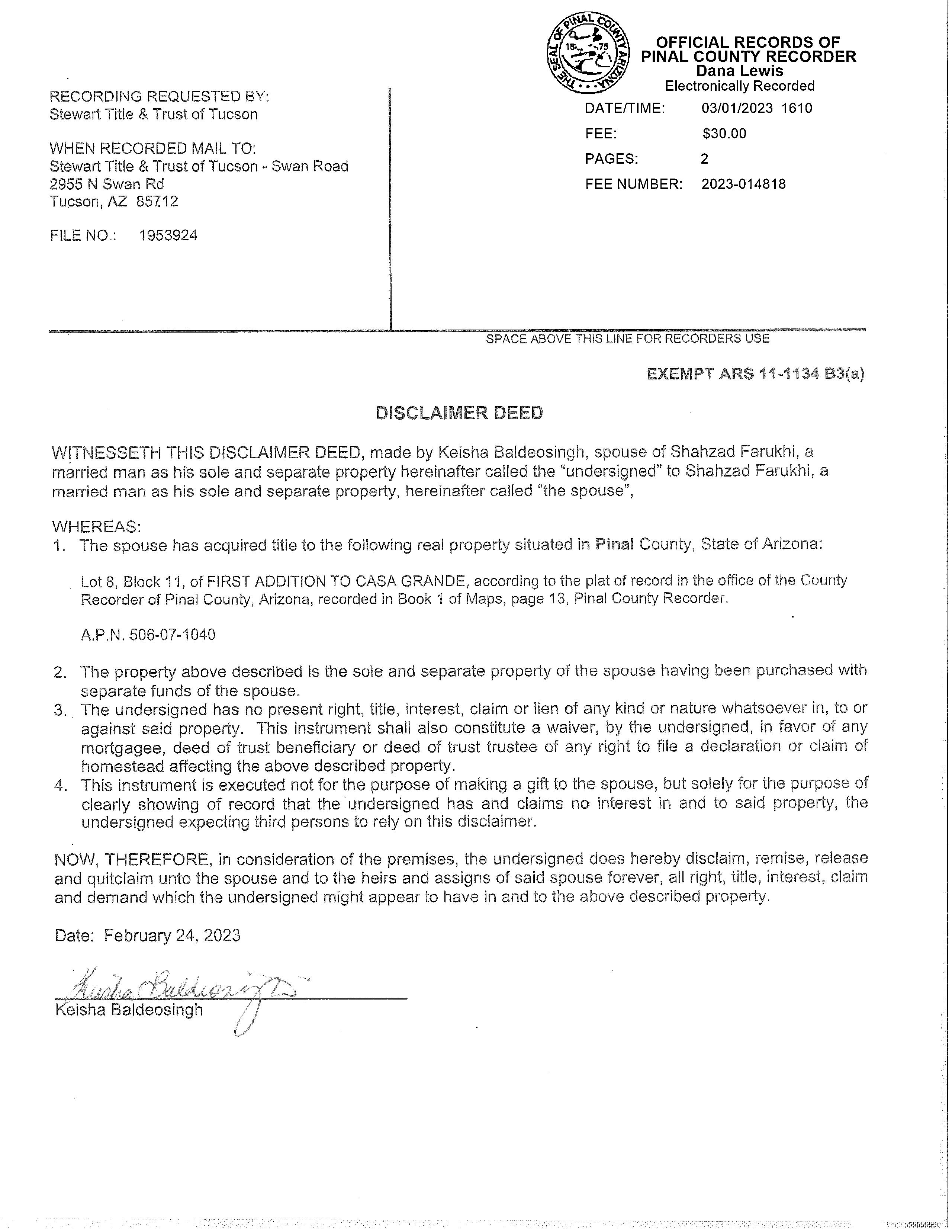 Deed Type : Disclaimer Deed