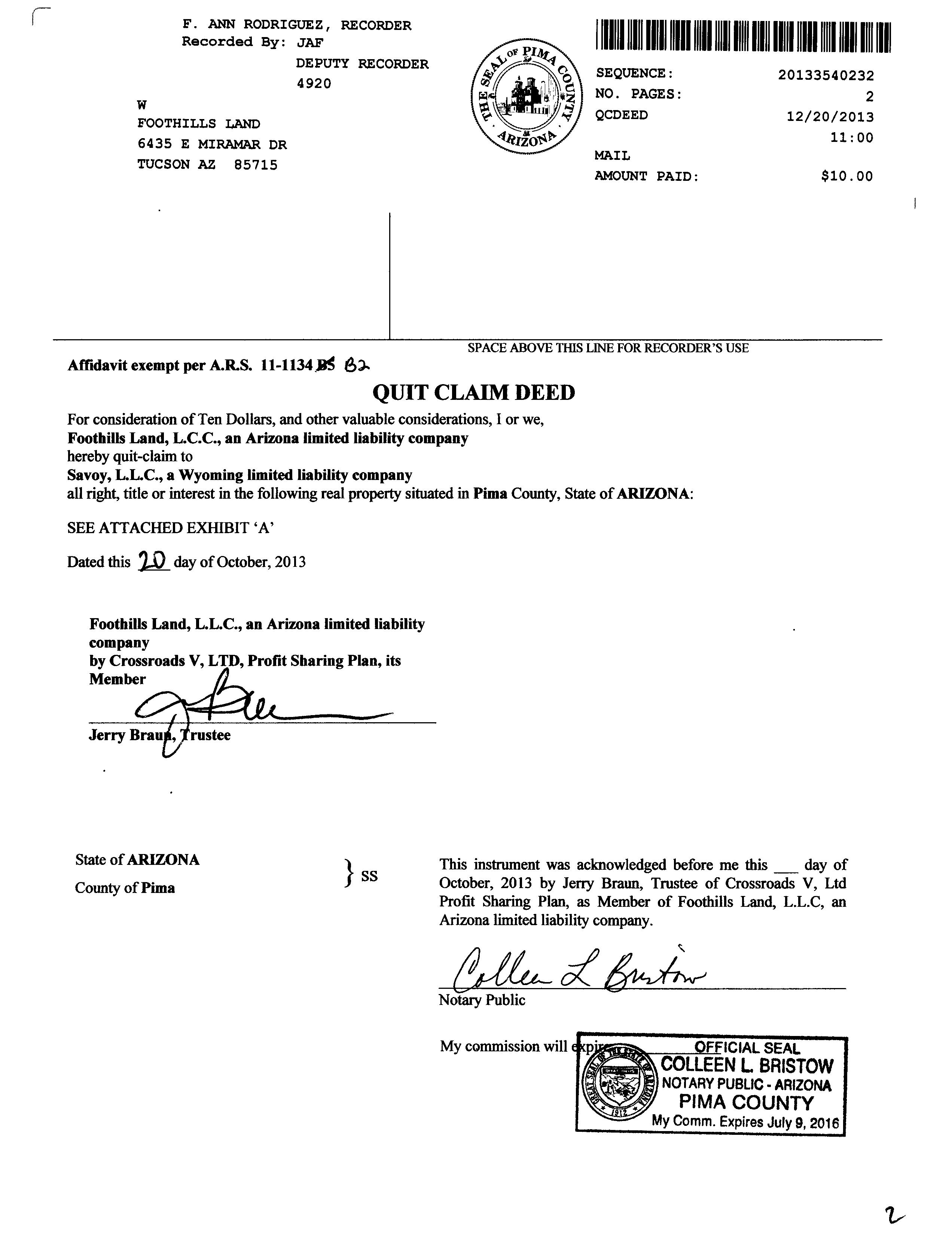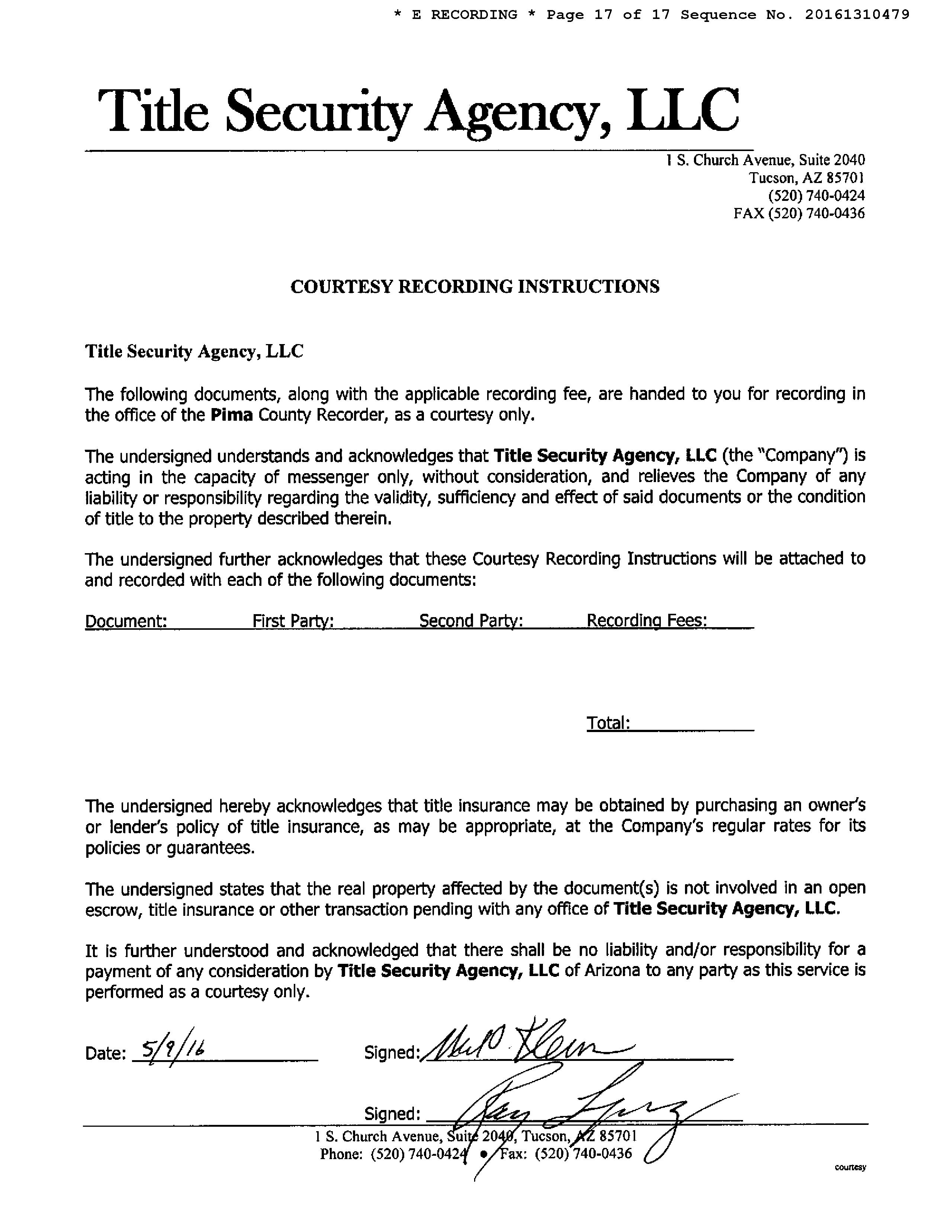 + FIRST AMERICAN TITLE, FC0, JSTI PIMA, AZ