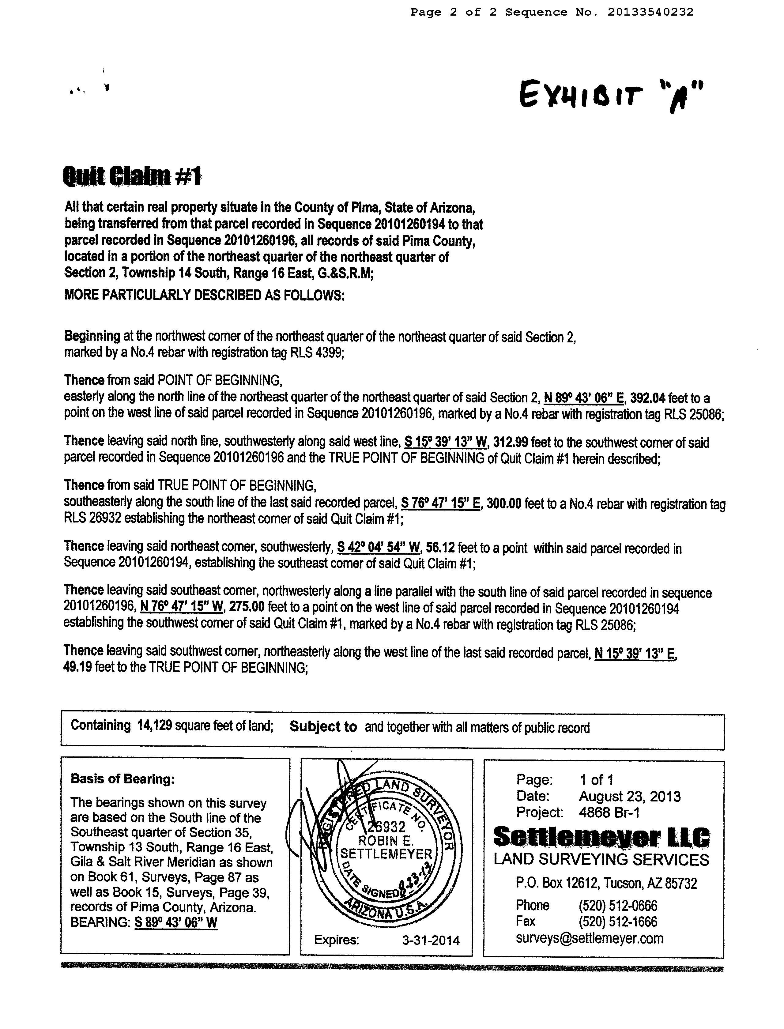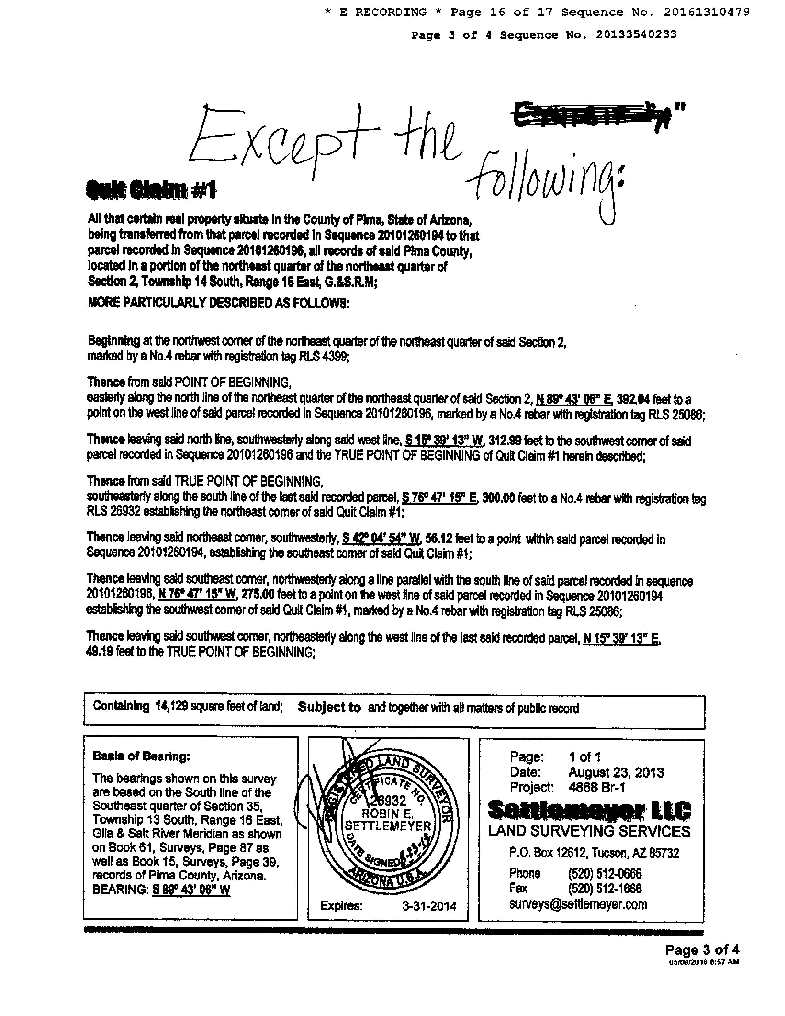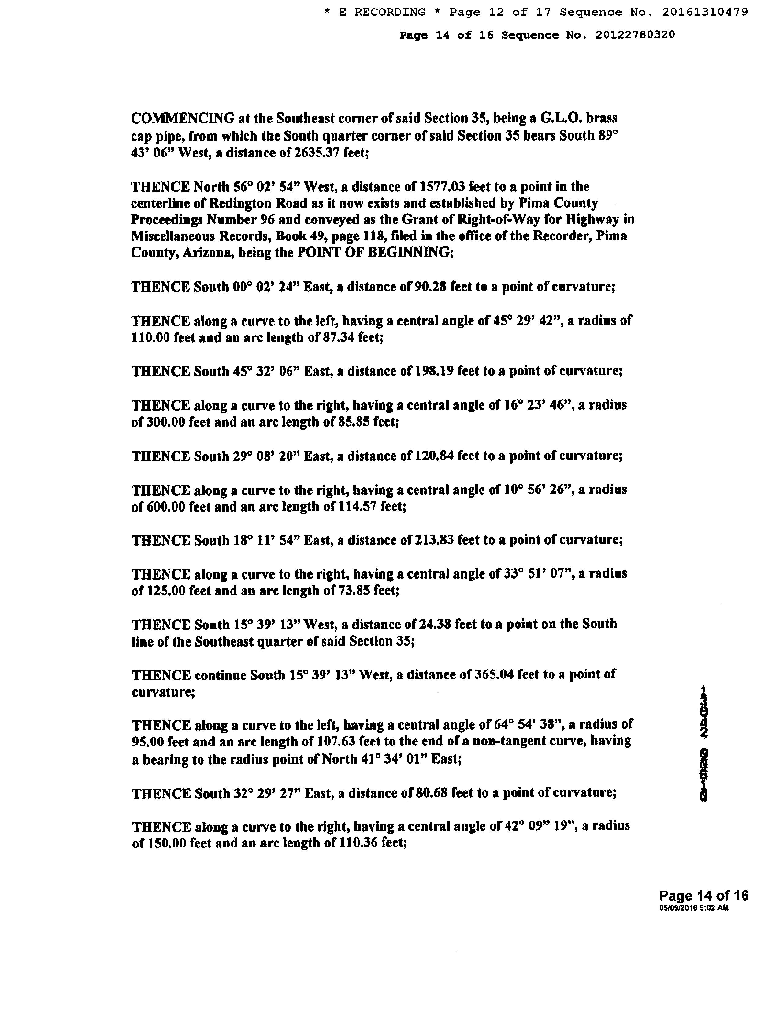 Legal Description : Ptn S850' Se4 Se4 Lyg S & Adj Redington Rd Sec 35-13-16 & N Ctrl Ptn Lot 3 13.57 Ac Sec 2-14-16