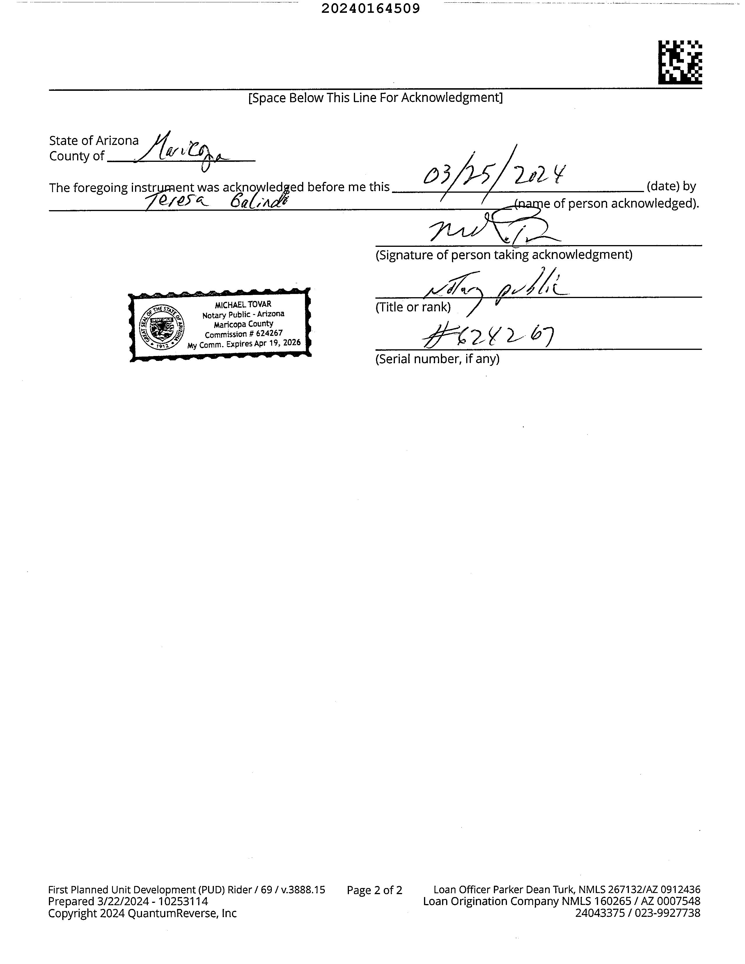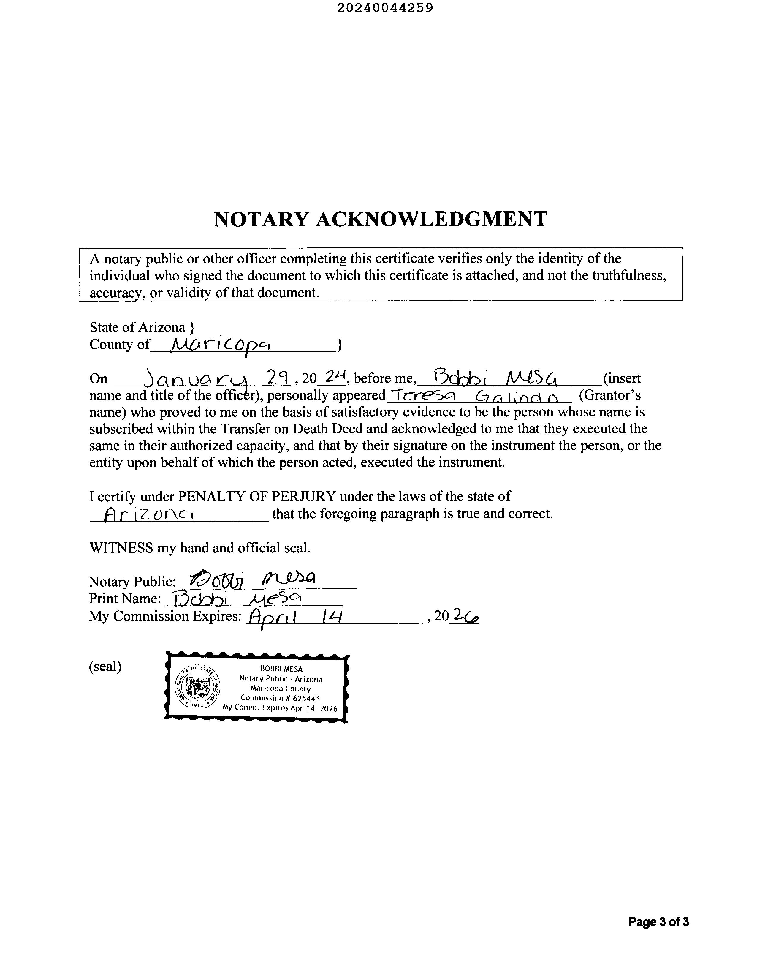 MARICOPA, AZ Document:CER DEA 2024.44258 Page:3 of 3 Printed on:4/19/2024 11:35 AM Branch :FC0 User :JSTI