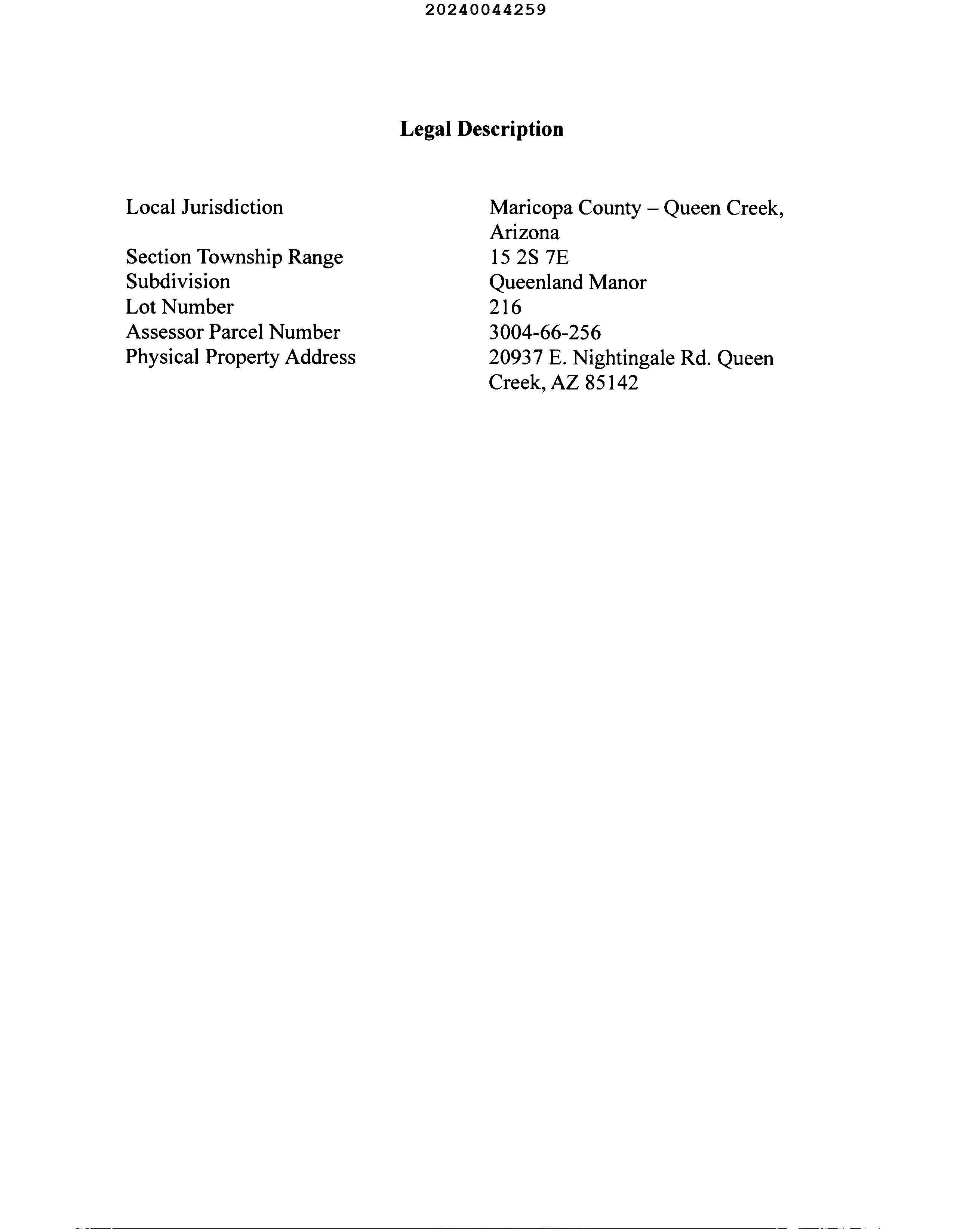 SITUS: 20937 E NIGHTINGALE RD QUEEN CREEK