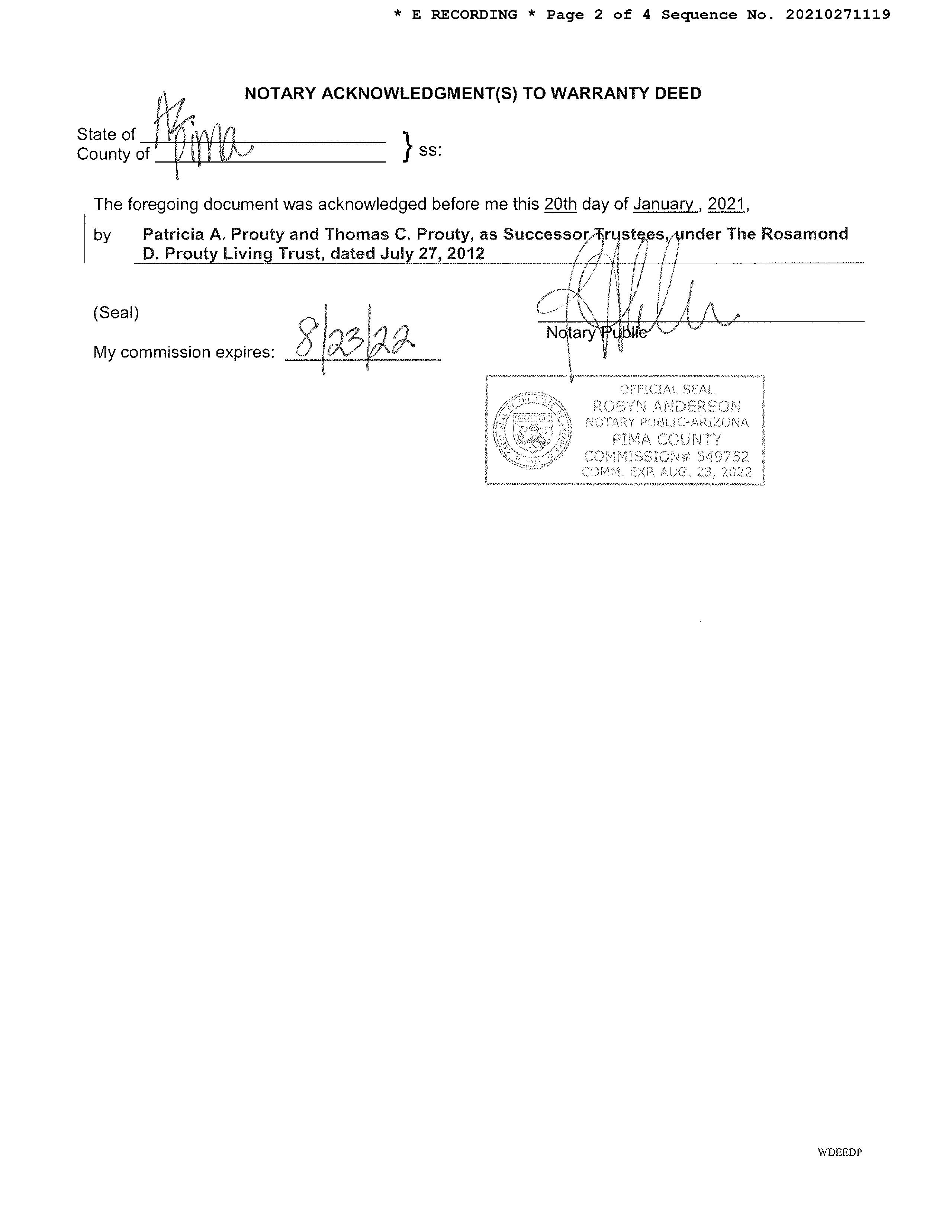 CURRENT TAXES INFORMATION THROUGH 01/28/2023 LAND IMPR EXEMPT RATE AREA SPECIAL DISTRICTS PRIMARY 35,918 0 0 8.9703 1025 SECONDARY 50 35,867 0 5.3438 2022 TOTAL TAX BILLED 4,541.37 2022 TAX AMT TAX DUE INTEREST DATE PAID TOTAL DUE FIRST HALF 2,270.69 0.00 0.00 10/31/2022 0.00 SECOND HALF 2,270.68 2,270.68 0.00 2,270.68 TOTAL CURRENT TAXES DUE 03/23 2,270.68 04/23 2,270.68 (ESTIMATED) IMPROVEMENTS BYPASS BLDG SQFT 2,111 FULL CASH VALUE 359,175 YEAR BUILT 1961 LAND USE 01 41 NUMBER OF STORIES 1.0 LOT SIZE 1 STDLT STORIES HEIGHT 0 SCHOOL DISTRICT 1025 EXTERIOR WALLS ADOBE LAND FULL CASH VALUE 502 GRADE MATERIALS IMPR FULL CASH VALUE 358,673 SALES SALE DATE SALE AMOUNT INSTRUMENT TYPE SELLER NAME VALIDITY 01/27/2021 412,000 2021 271119 WD PROUTY PATRICIA A & THOMAS