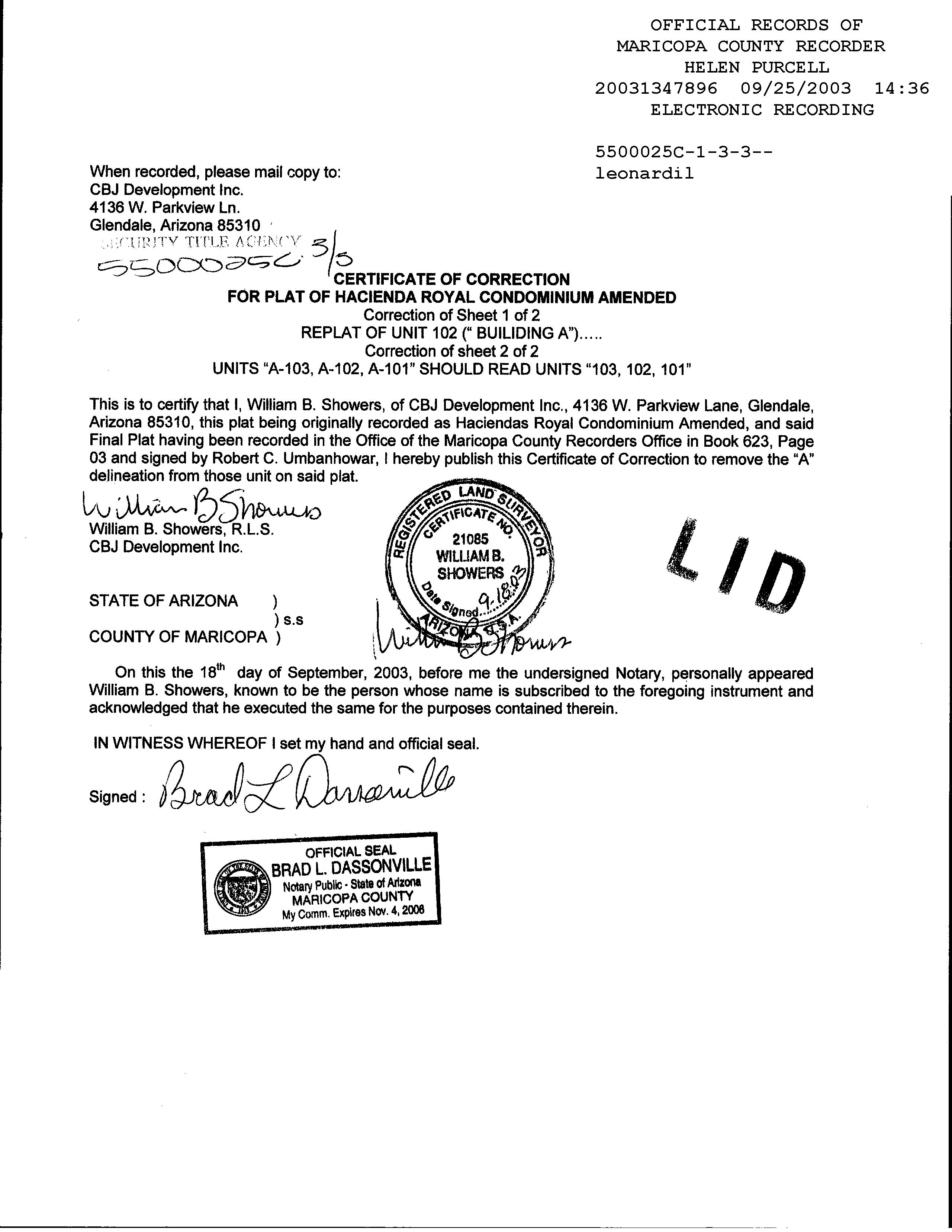 MARICOPA, AZ Document:PLT COR 2003.1347896 Page:1 of 1 Printed on:4/9/2024 1:02 PM Branch :FC0 User :JSTI
