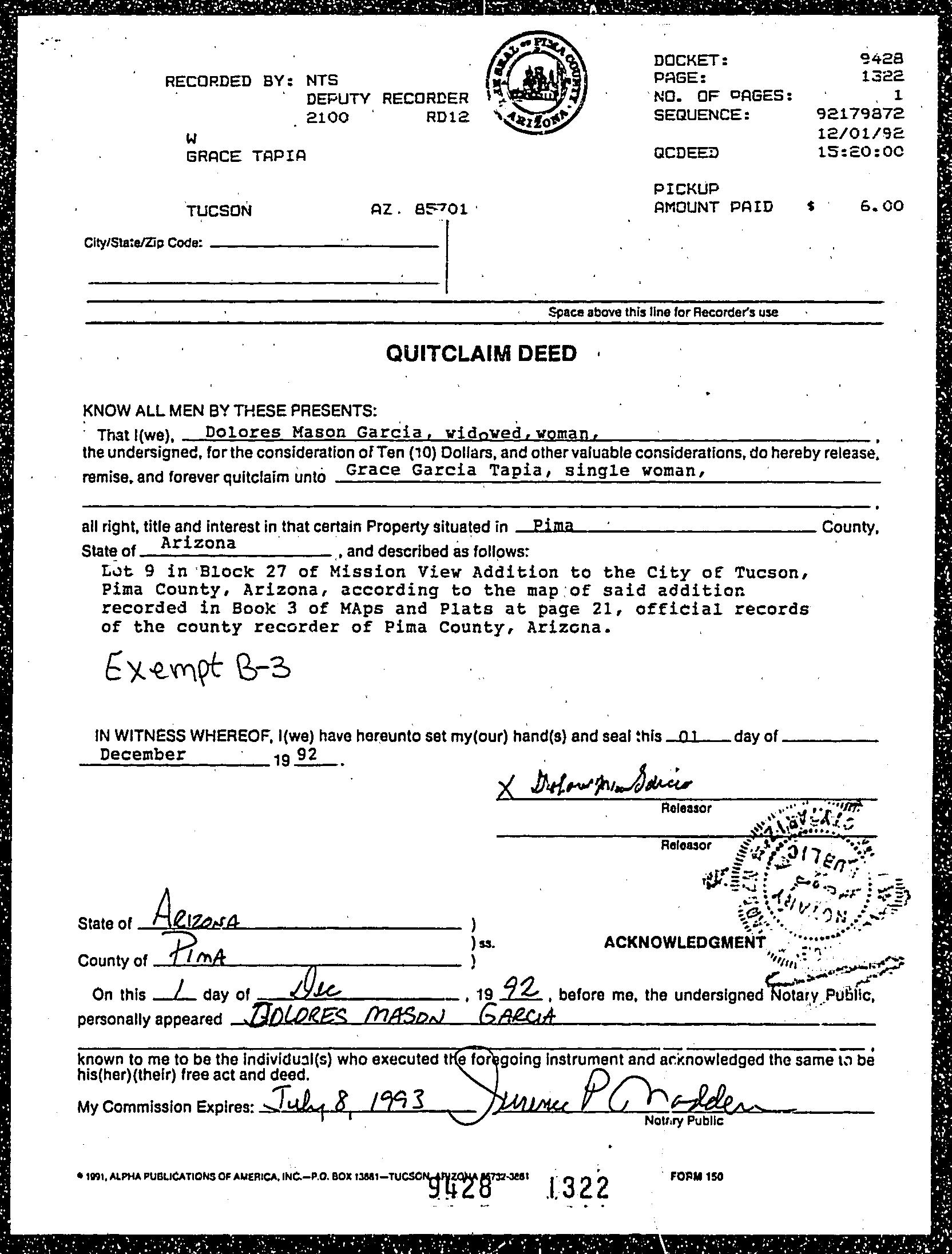 Mailing Address : 220 E 39th St, Tucson AZ 85713-4846 C028