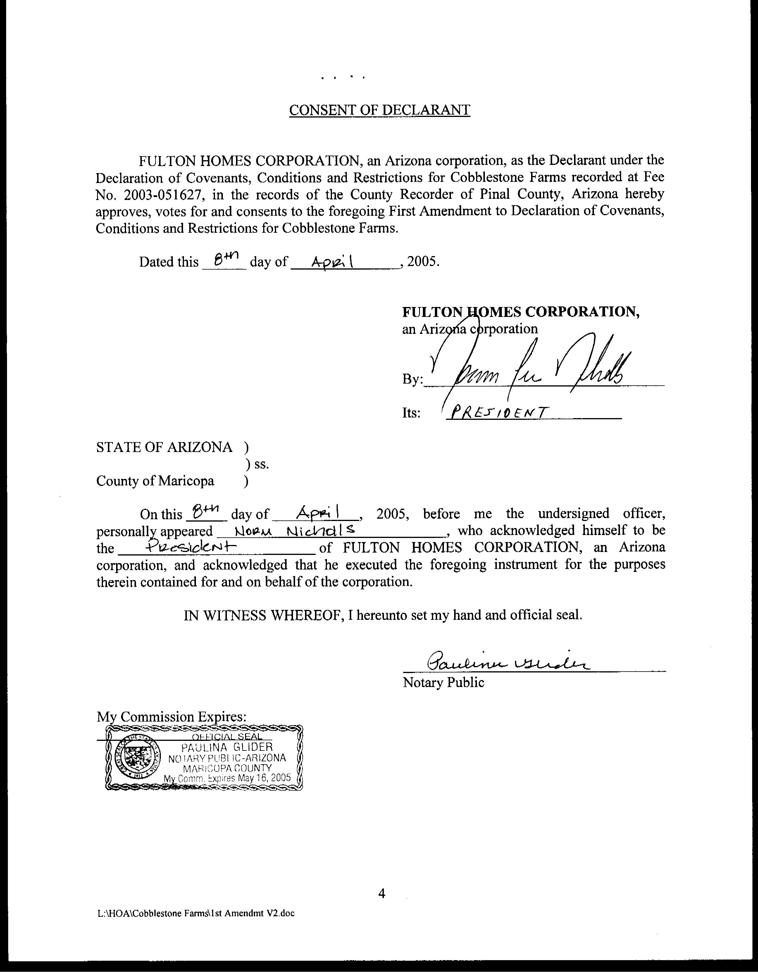 PINAL (PL), AZ Document:RES AMD 2005.40524 Page:4 of 4 Printed on:4/25/2023 12:19 PM Branch :FC0 User :JSTI
