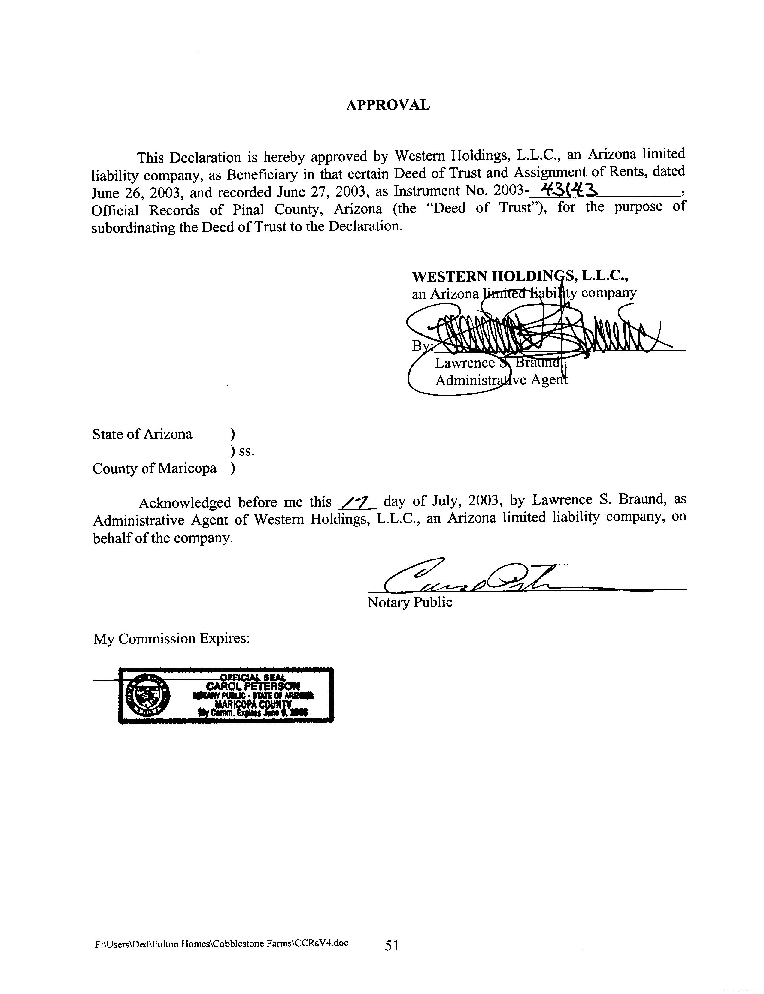 PINAL (PL), AZ Document:RES 2003.51627 Page:52 of 57 Printed on:4/25/2023 12:14 PM Branch :FC0 User :JSTI