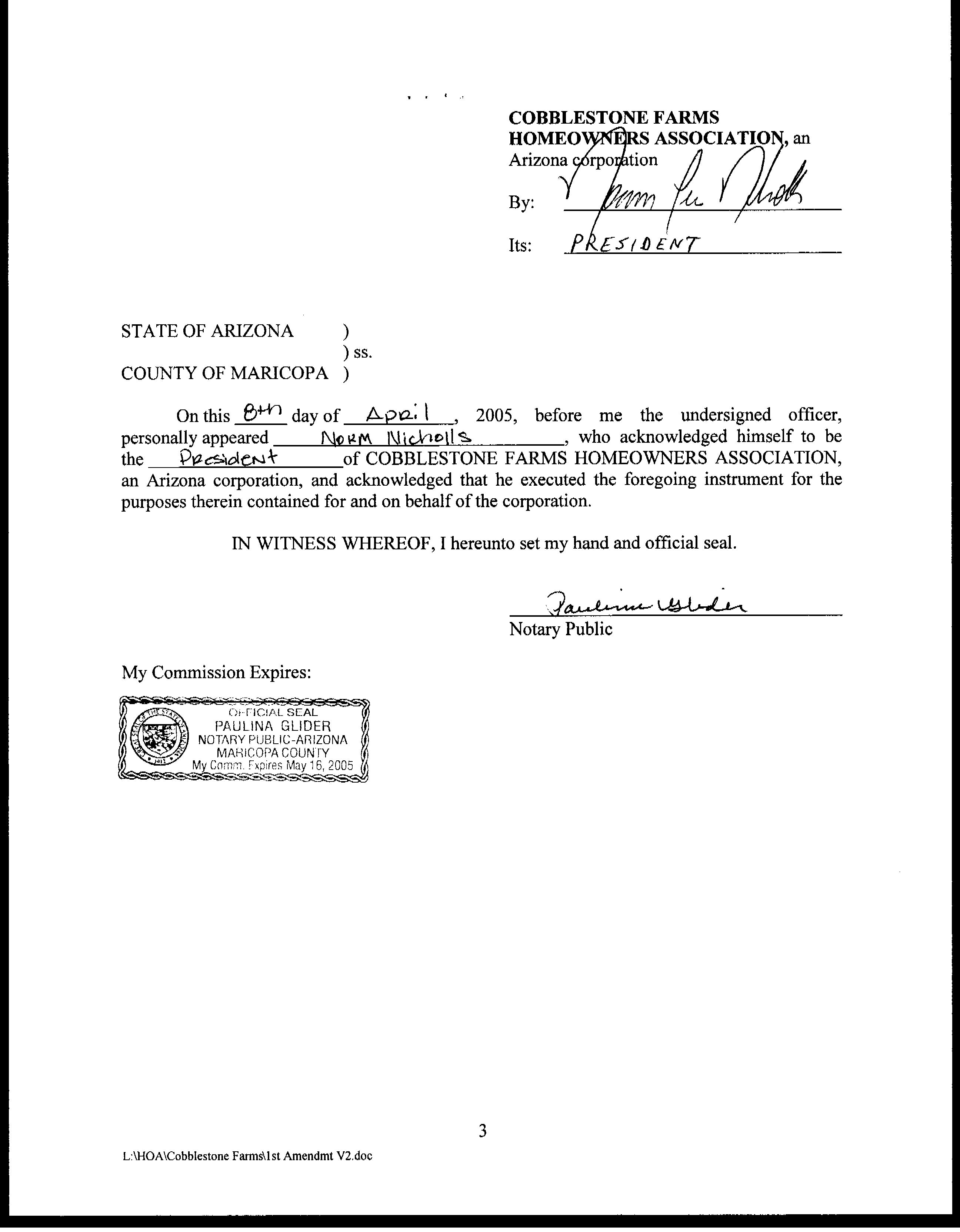 PINAL (PL), AZ Document:RES AMD 2005.40524 Page:3 of 4 Printed on:4/25/2023 12:19 PM Branch :FC0 User :JSTI