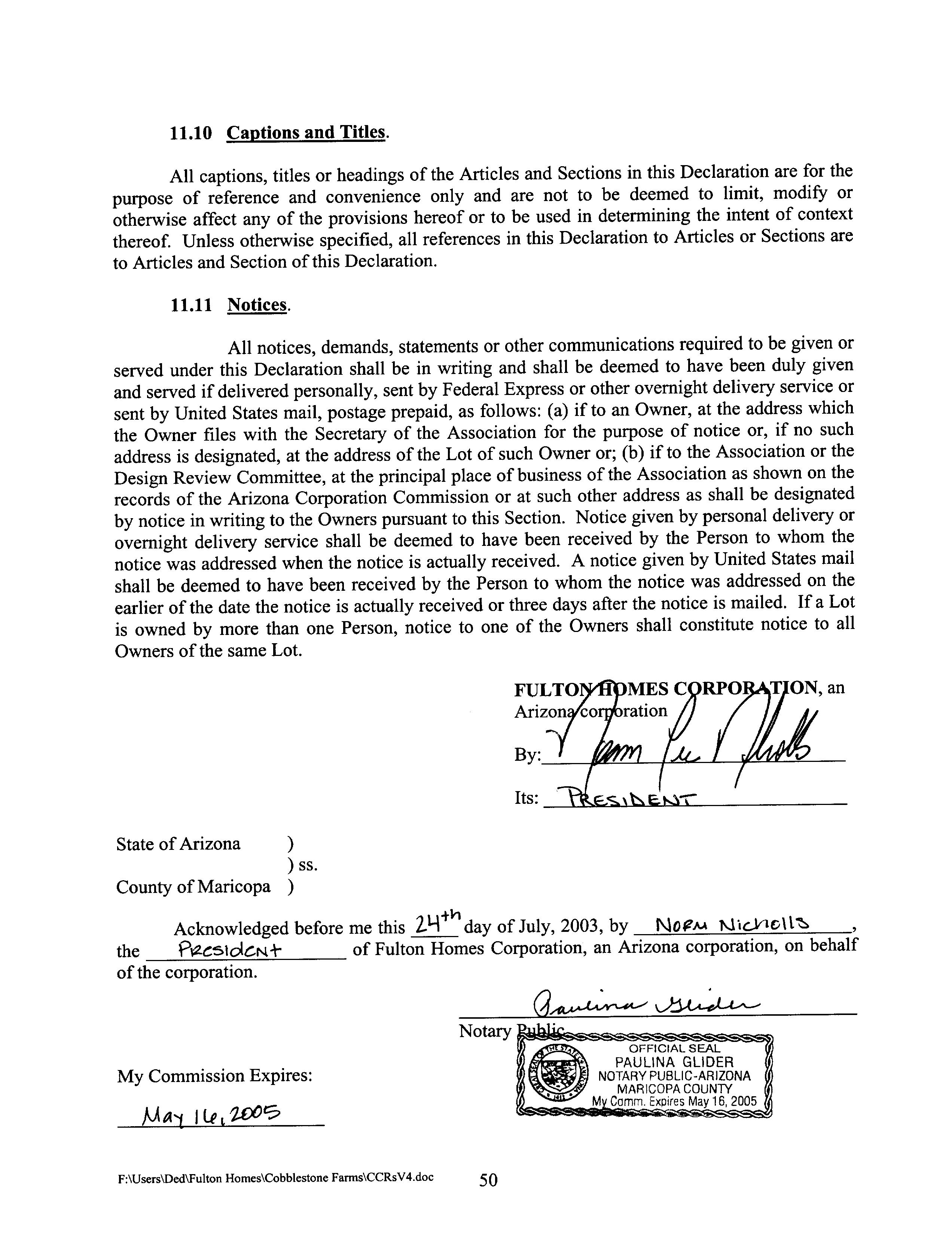 PINAL (PL), AZ Document:RES 2003.51627 Page:50 of 57 Printed on:4/25/2023 12:14 PM Branch :FC0 User :JSTI