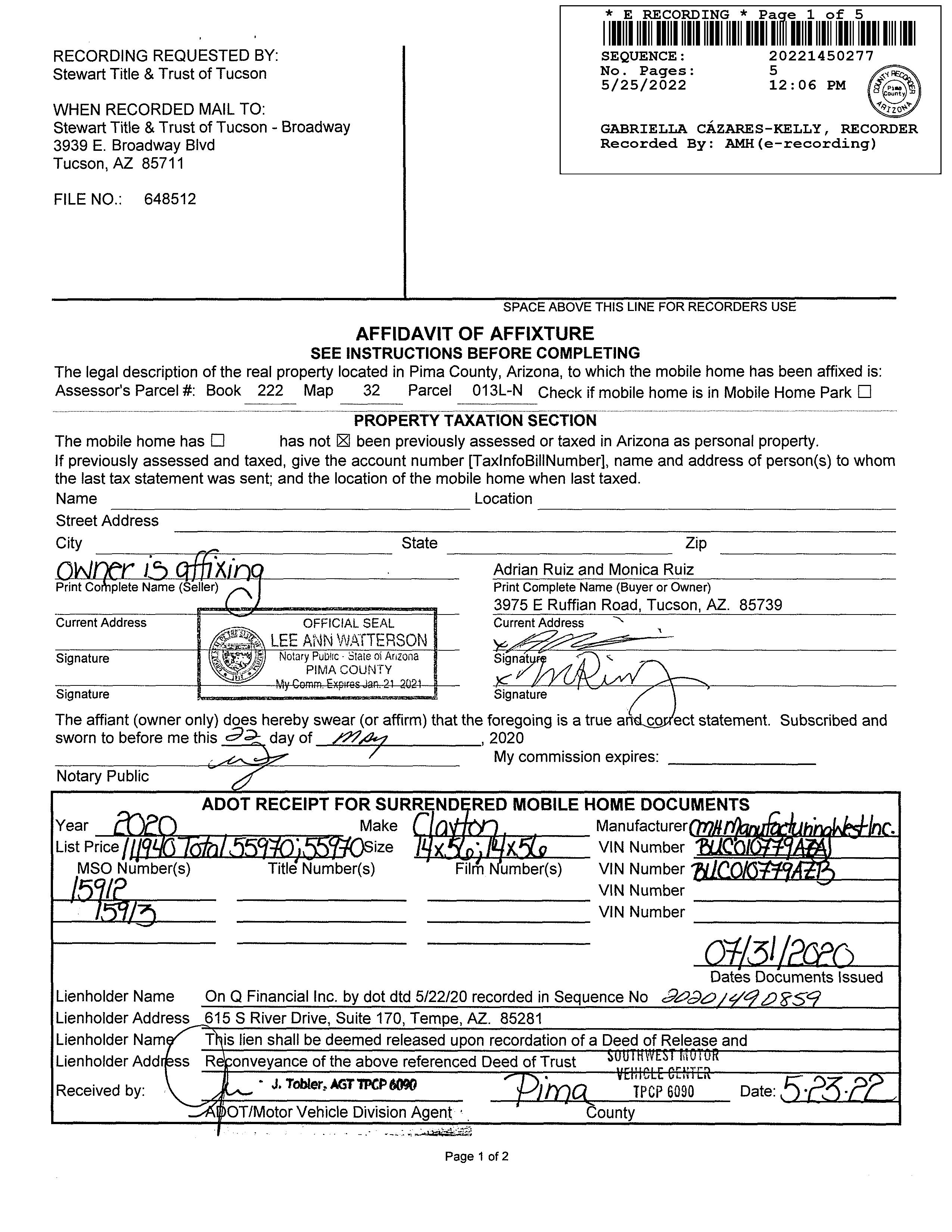 Owner Name : Ruiz Adrian Recording Date : 05/28/2020