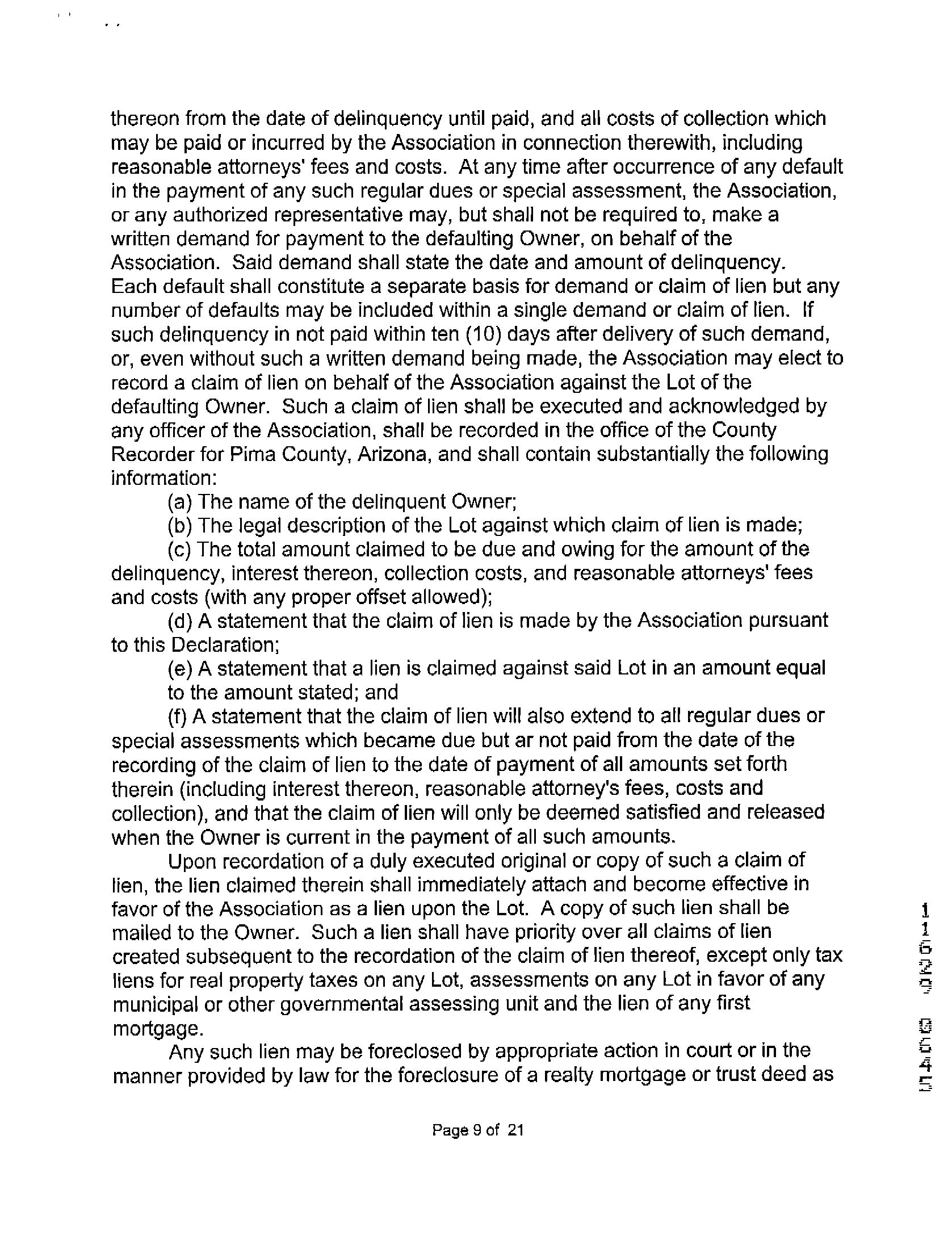 Defective recording of any document 5 There are restrictive covenants 6 There is a lien on your title because there is: a) a deed of trust b) a judgement, tax, or special assessment c) a charge by a homeowner’s association 7 Title is unmarketable 8 Mechanics lien 9 Forced removal of a structure because it: a) extends on another property and/or easement b) violates a restriction in Schedule B c) violates an existing zoning law* 10 Cannot use the land for a Single-Family Residence because the use violates a restriction in Schedule B or a zoning ordinance