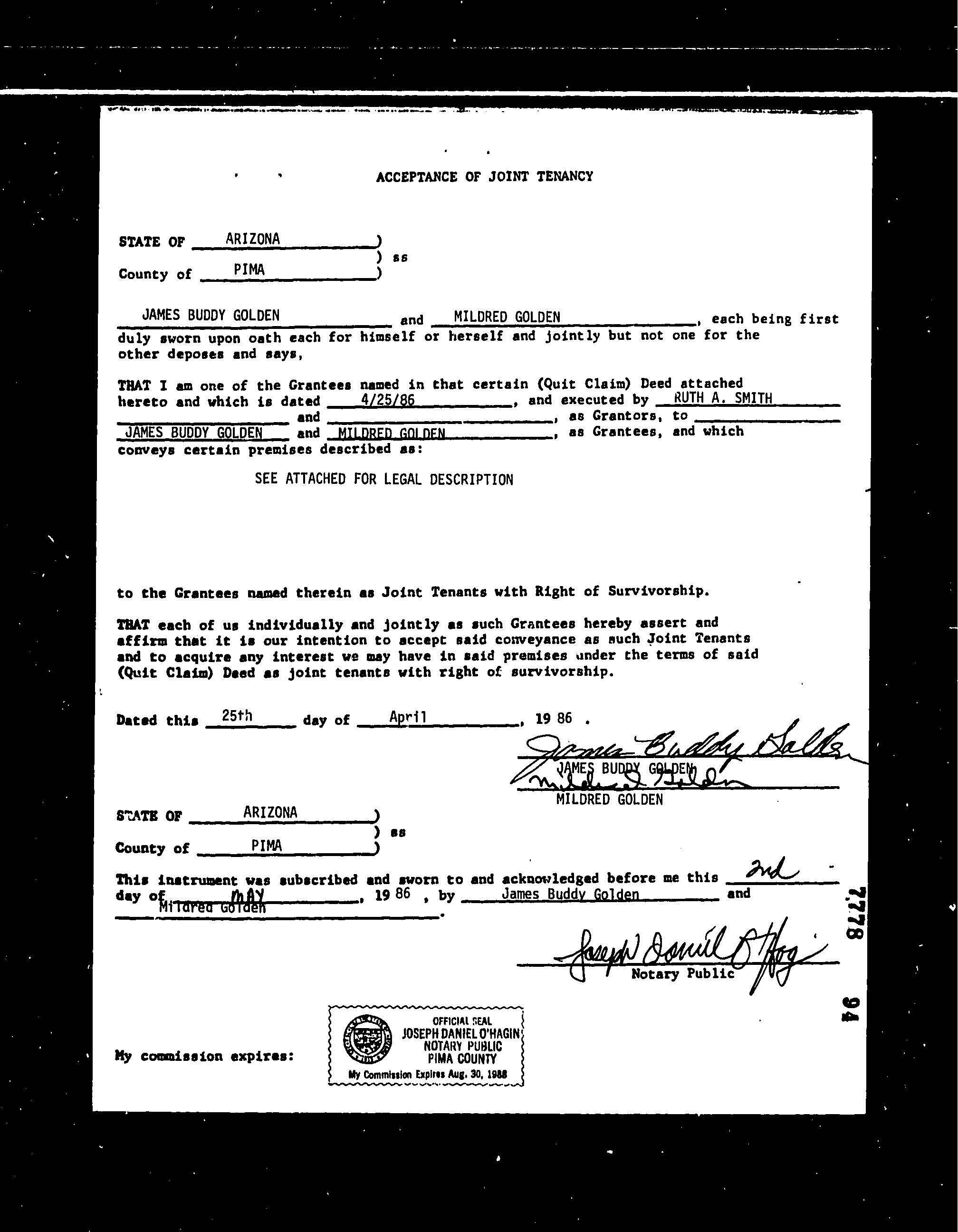 Deed Type : Quit Claim Deed Document # : 2310458