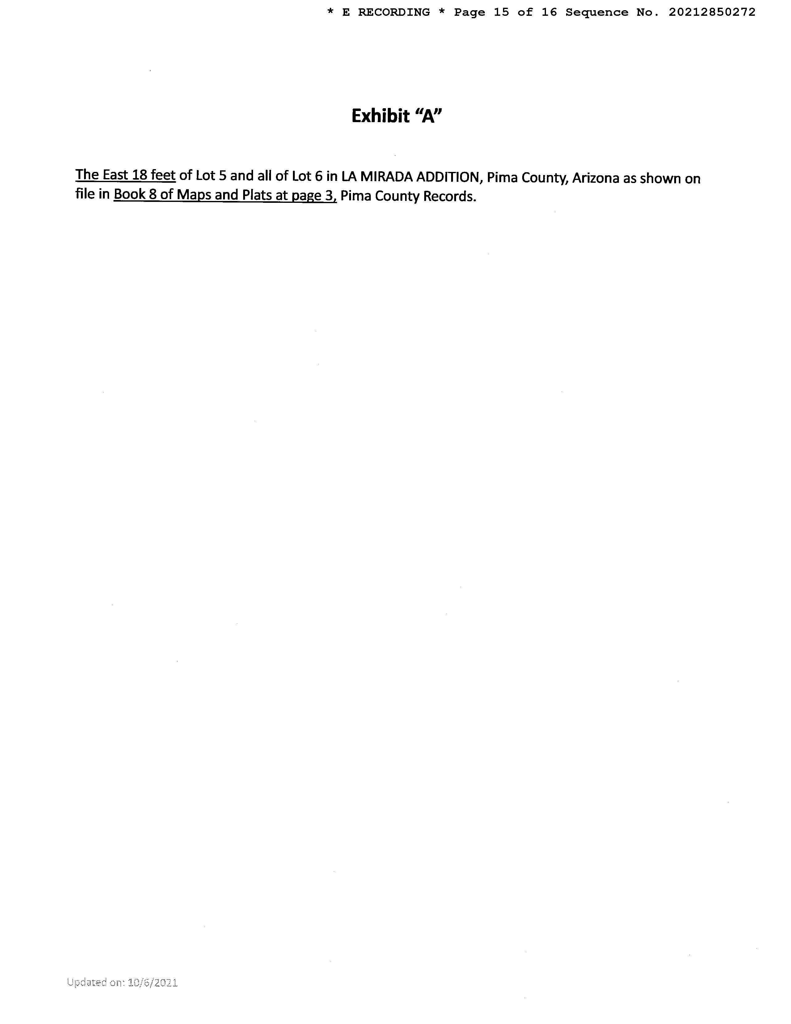 Subject Property : 2250 E 8th St Tucson AZ 85719 Owner Information Owner Name : Ortiz Lauren Monet & Virden Mason & Orti C & Rodolfo P All Mailing Address : 2250 E 8th St, Tucson AZ 85719-5619 C018 Vesting Codes : / / Community Property Owner OccupiedIndicator : O Location Information Legal Description : La Mirada Lot 6 & E18' Of Lot 5 County : Pima, Az APN : 125-08-0060 Census Tract / Block : 6.00 / 2 Subdivision : La Mirada Township-Range- Sect : 14S-14E-8 Map Reference : 08-14S-14E Legal Book/Page : 8-3 School District : Tucson Unified Legal Lot : 6 Munic/Township : Tucson Unified Market Area : 60 Owner Transfer Information Recording/Sale Date : 10/12/2021 / 10/05/2021 Deed Type : Joint Tenancy Deed Document # : 2850271 1st Mtg Document # : 2850272 Last Market Sale Information Recording/Sale Date : 08/26/2019 / 08/16/2019 1st Mtg Amount/Type : $365,750 / Cnv Sale Price : $385,000 1st Mtg Document # : 2380482 Document # : 2380481 1st Mtg Term : 30 Deed Type : Warranty Deed Price Per SqFt : $240.78 Title Company : Signature Title Agcy/az Llc Lender : Nova Fin'l & Inv Corp Seller Name : Rosenthal Elizabeth L Prior Sale Information Prior Rec/Sale Date : 01/21/1981 Prior Deed Type : Deed (reg) Prior Doc Number : 6451-722 Customer Name : Lisa Mrazek Customer Company Name : First American Title Insurance Company Prepared On : 08/26/2022 © 2022 CoreLogic. All rights reserved