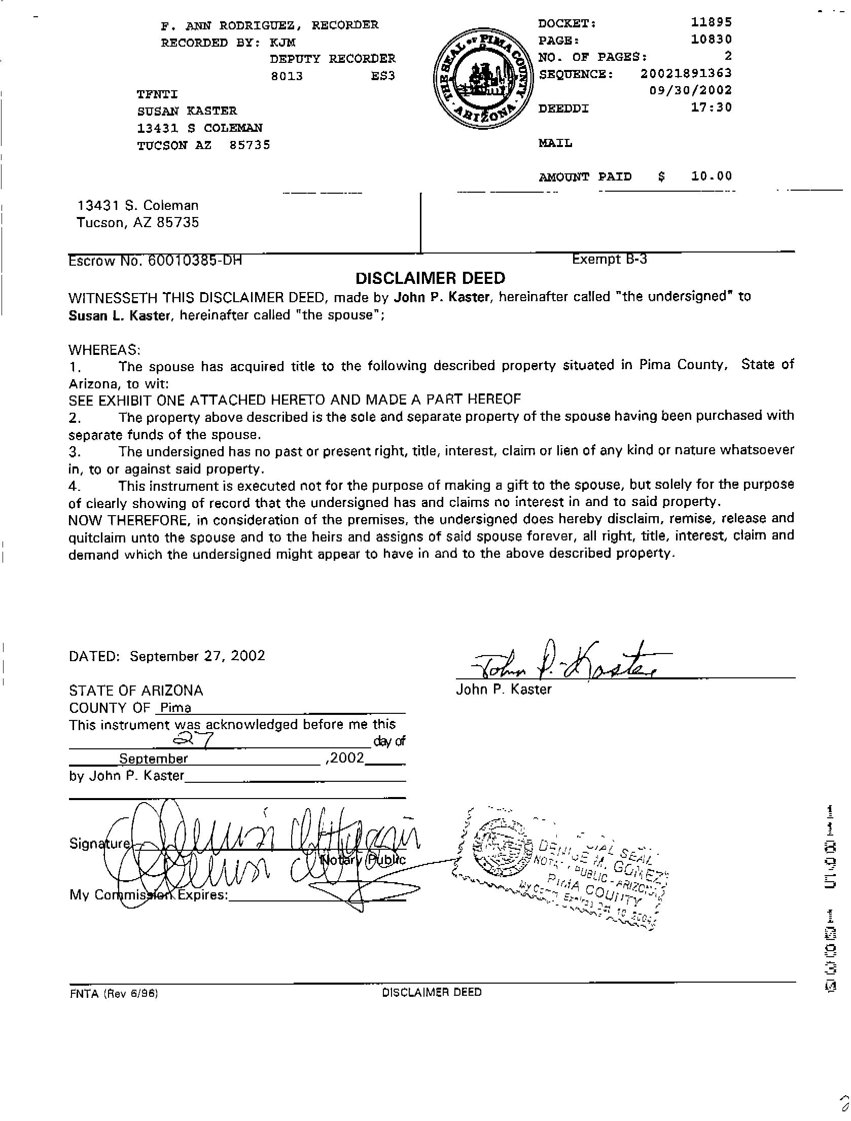 Recording/Sale Date : 09/30/2002 / 09/27/2002