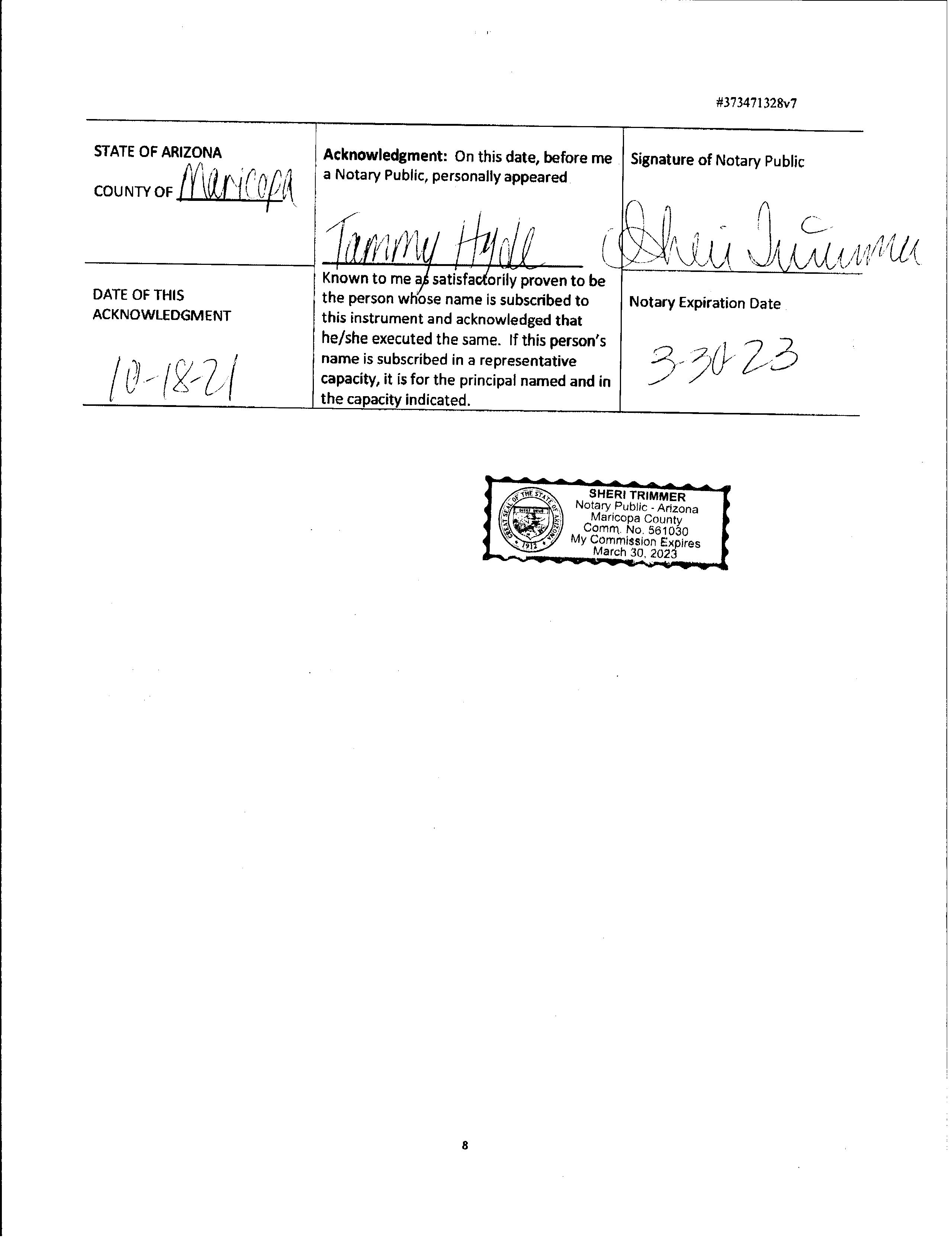 PINAL (PL), AZ Document:DOT 2021.132604 Page:8 of 9 Printed on:6/10/2024 12:05 PM Branch :FC0 User :JSTI