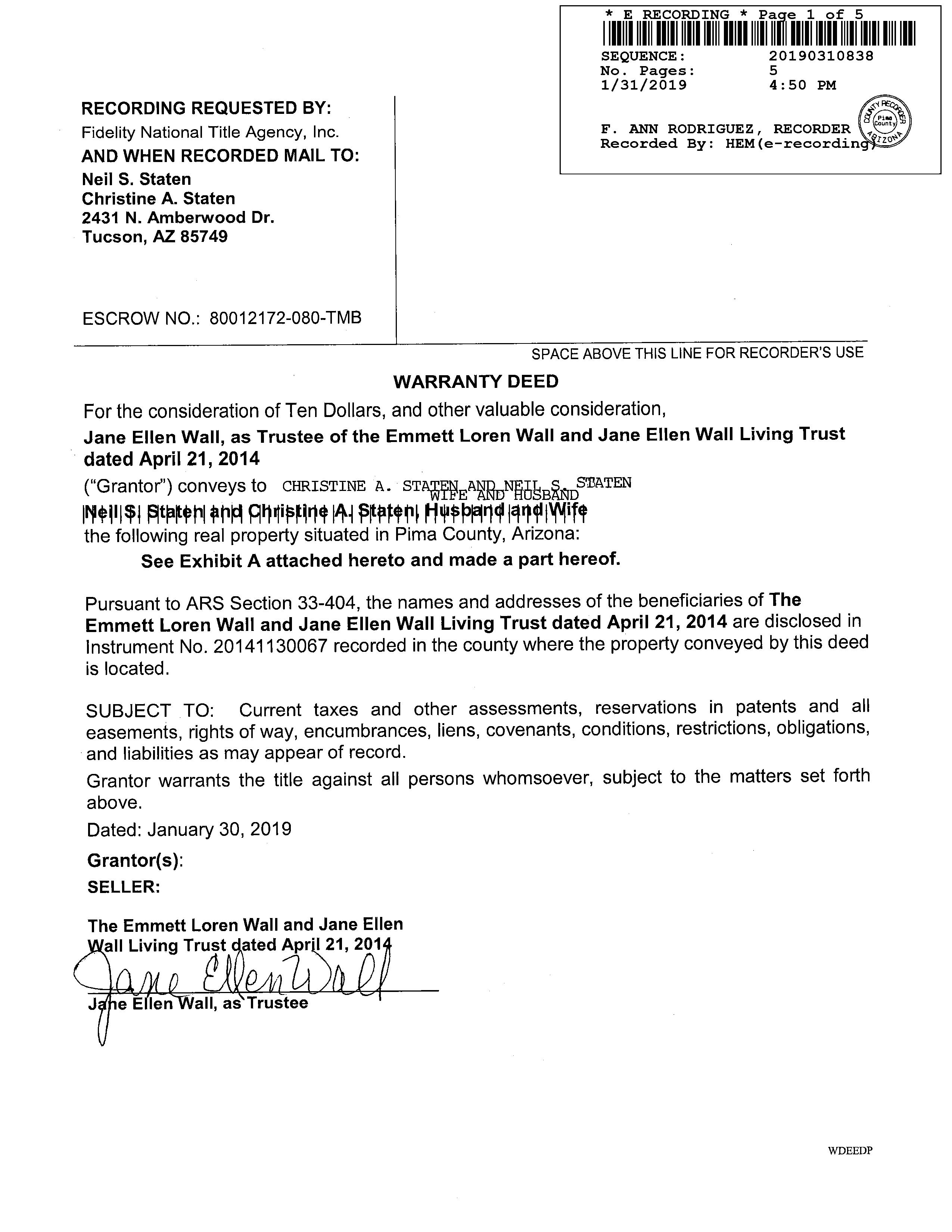 Deed Type : Warranty Deed