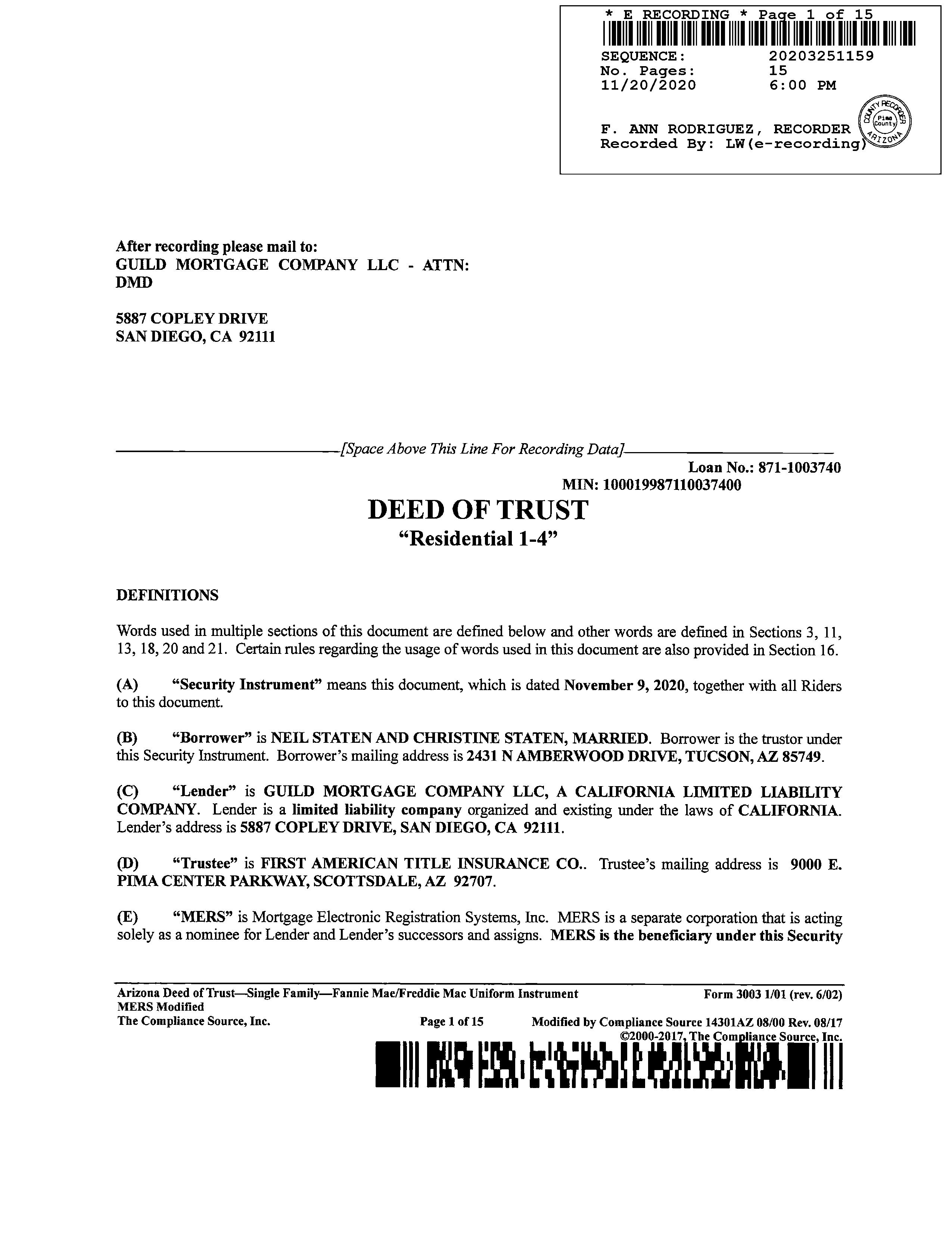 Mailing Address : 2431 N Amberwood Dr, Tucson AZ 85749-8991 R093