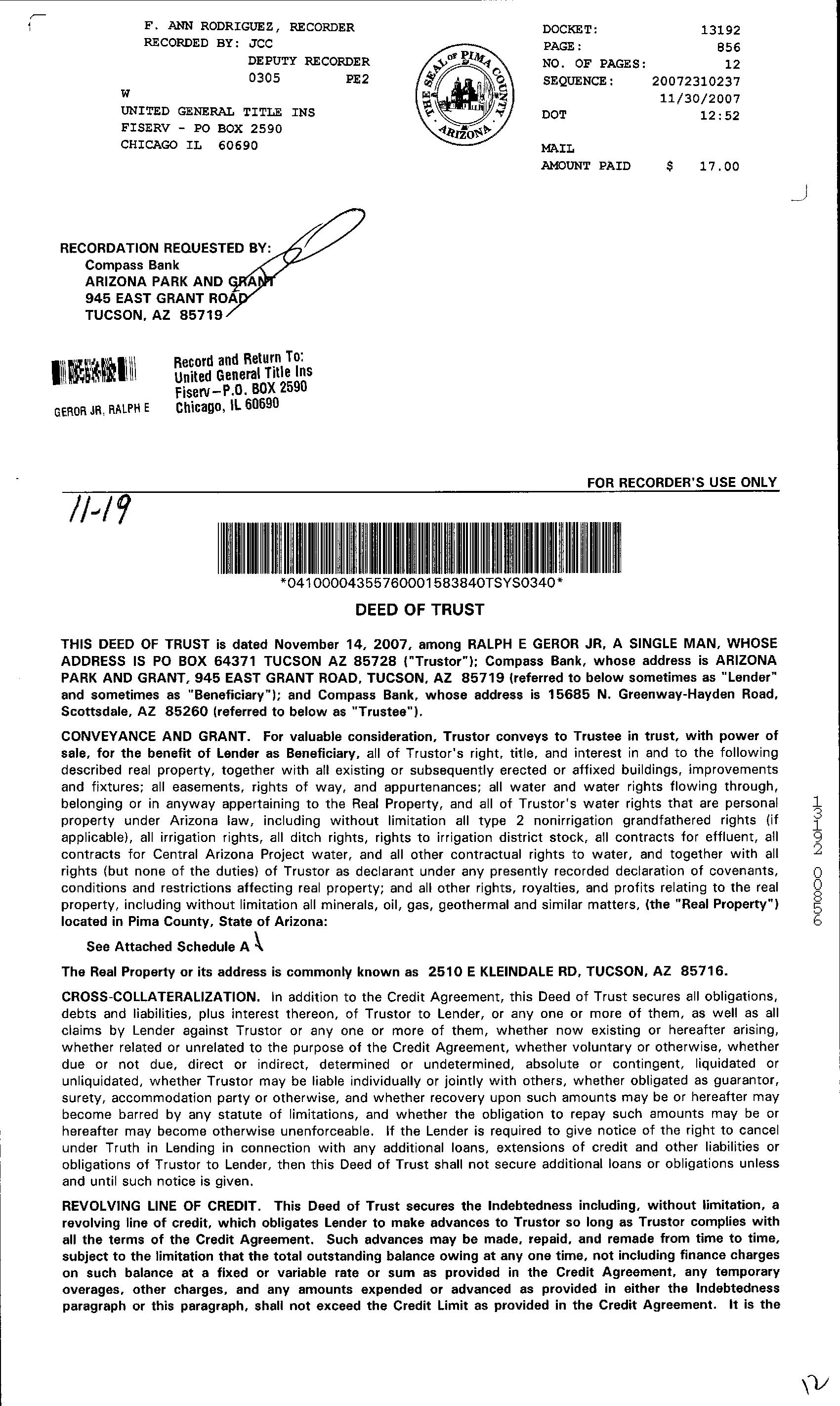 + FIRST AMERICAN TITLE, FC0, LMRA PIMA, AZ