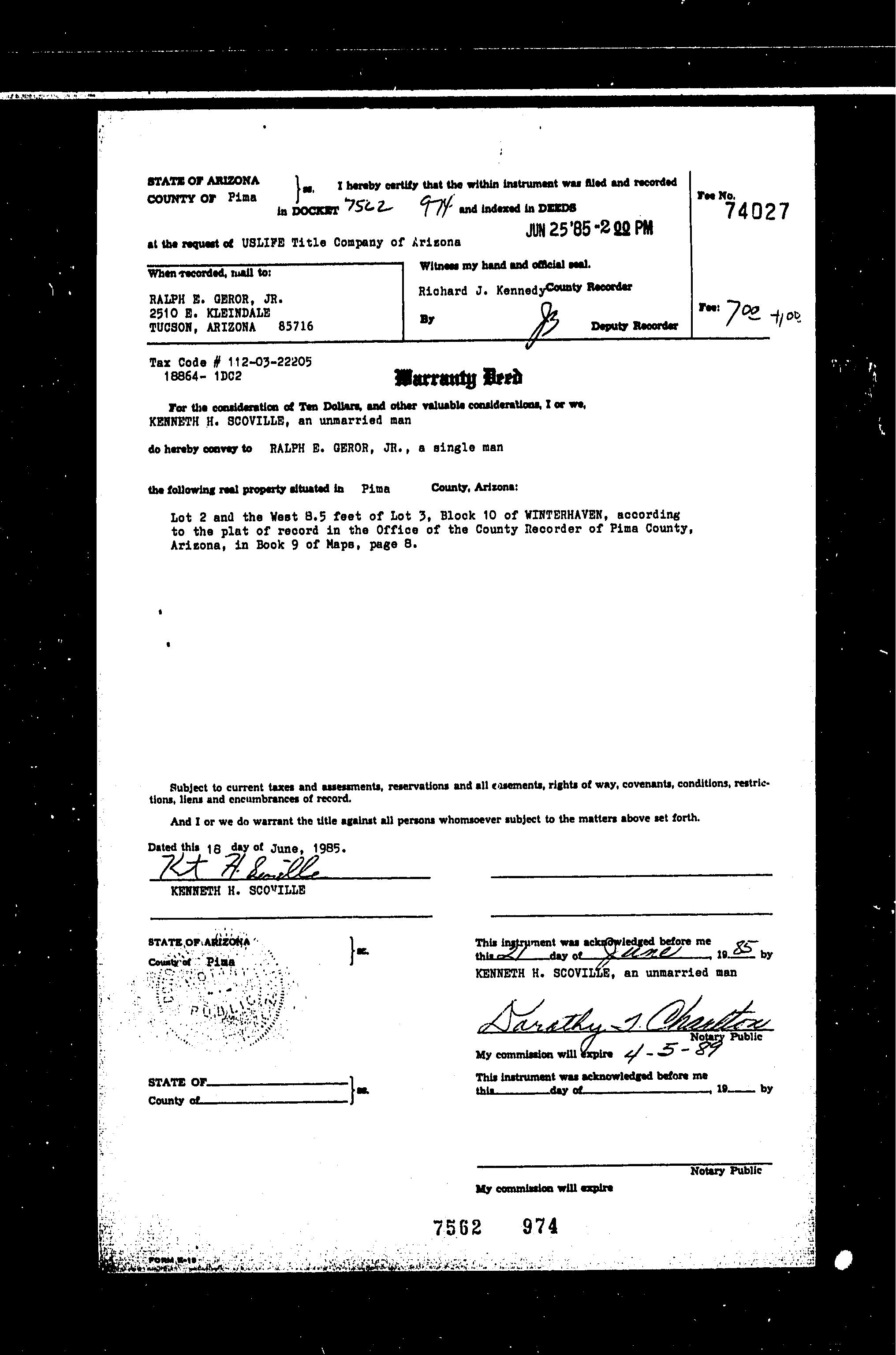 #12 2702 E La Cienega Dr Tucson Az 85716 Owner Name: Sadowsky Jordan B /Sadowsky