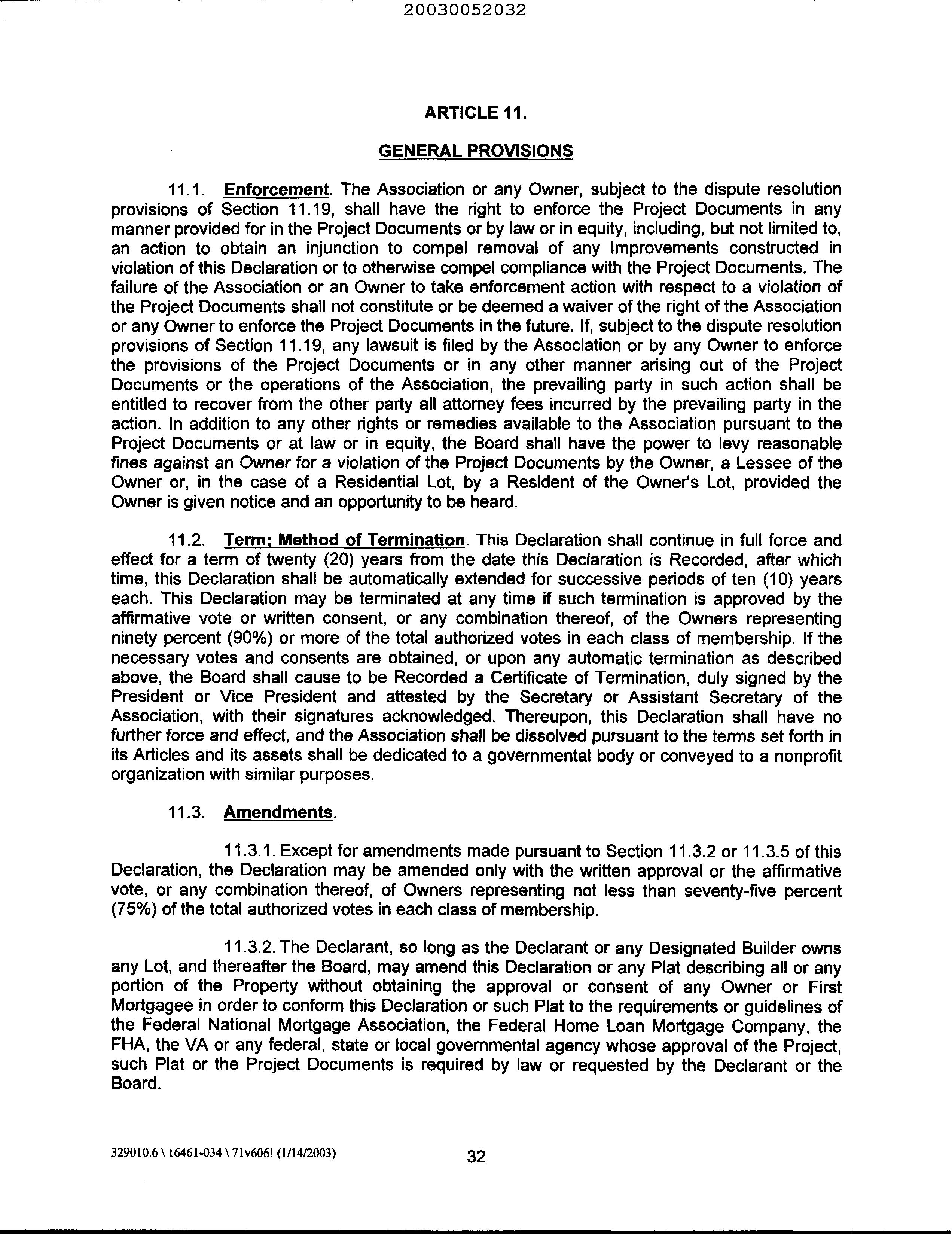 MARICOPA, AZ Document:RES 2003.52032 Page:11 of 48 Printed on:1/27/2023 4:30 PM Branch :FC0 User :JSTI