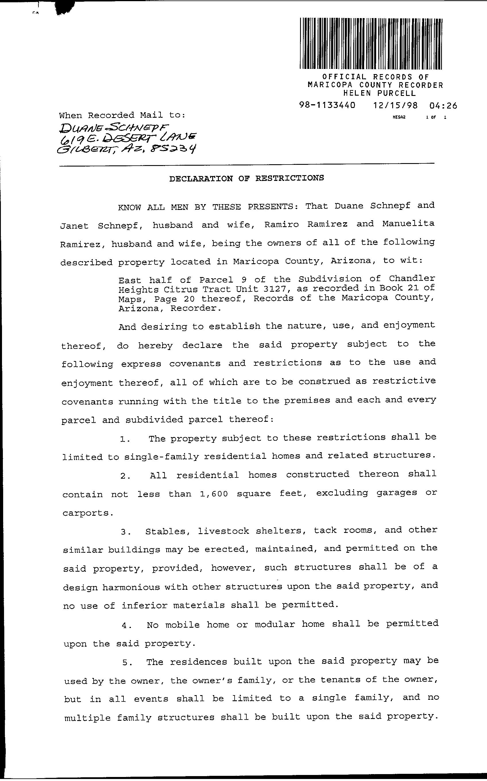 COVENANTS, CONDITIONS & RESTRICTIONS