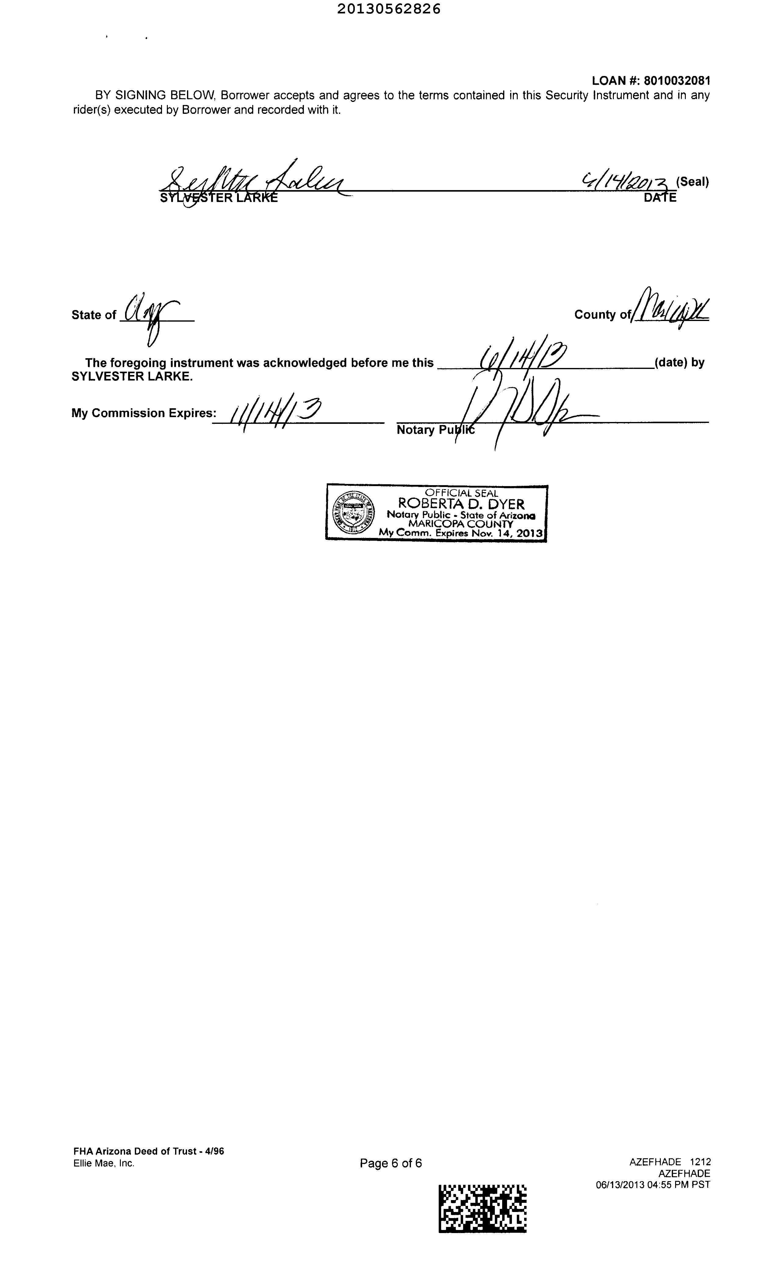 MARICOPA, AZ Document:DOT 2013.562826 Page:6 of 9 Printed on:8/25/2023 11:20 AM Branch :FC0 User :JSTI