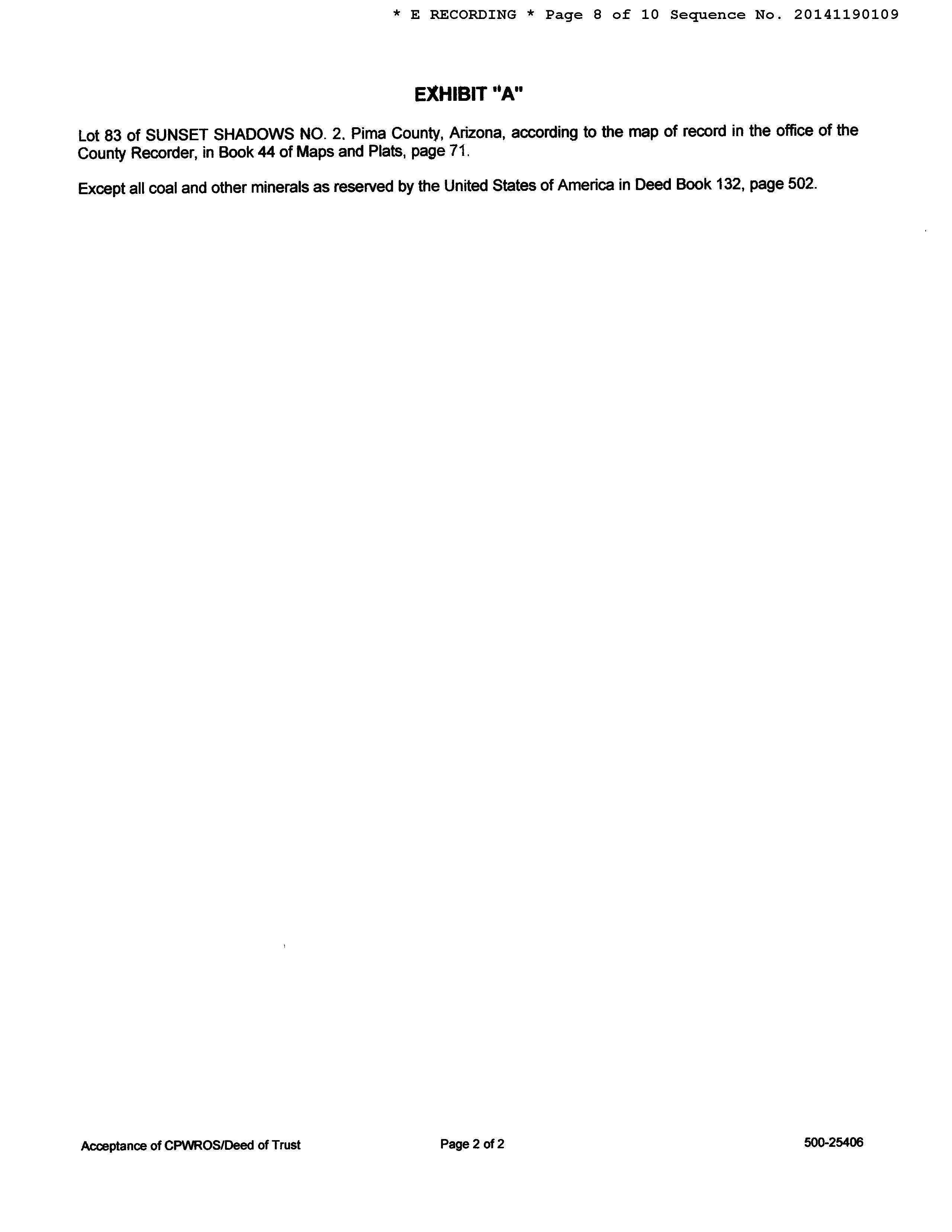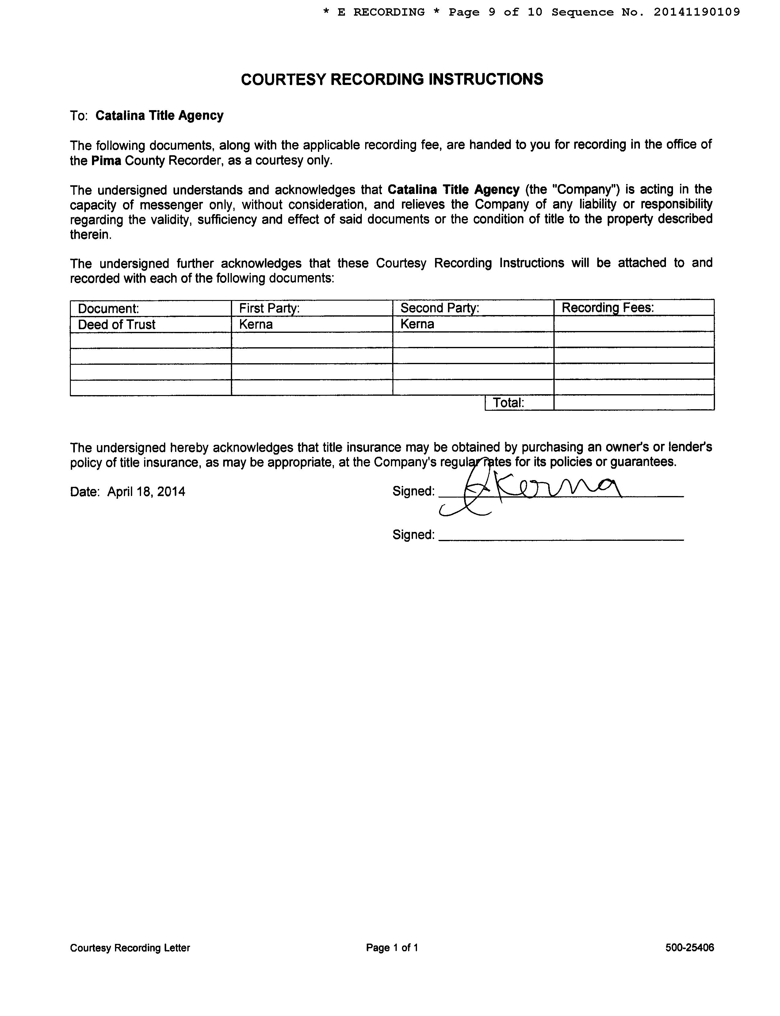 Recording/Sale Date : 04/29/2014 / 04/18/2014 1st Mtg Amount/Type : $126,500 / Pp Sale Price : $137,500 1st Mtg Document # : 1190109 Document # : 1190108