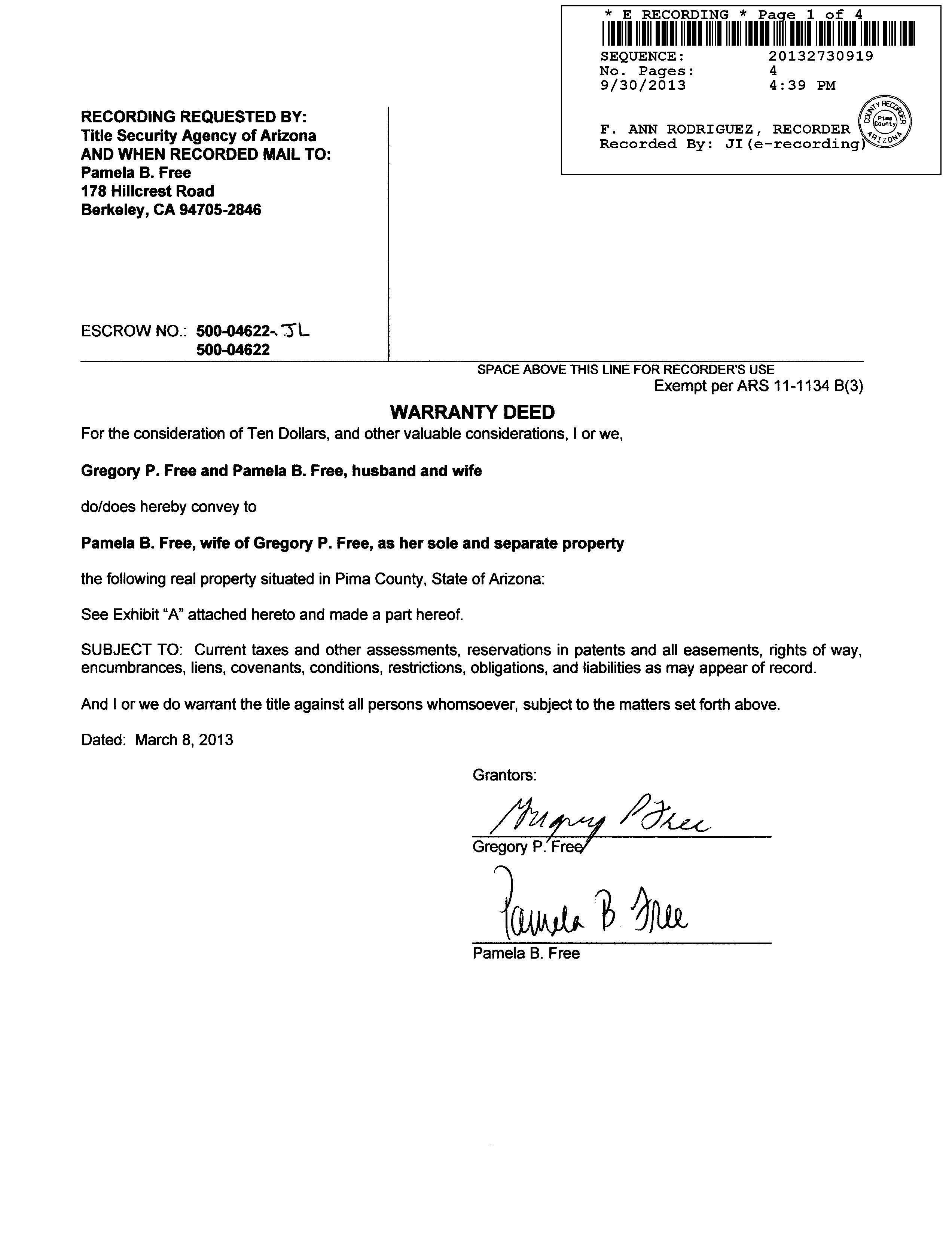 This report is not an insured product or service or a representation of the condition of title to real property. It is not an abst ract, legal opinion, opinion of title, title insurance commitment or preliminary report, or any form of Title Insurance or Guaranty. This report is issued exclusively for the benefit of the Applicant therefor and may not be used or relied upon by any other person. This report may not be reproduced in any manner without First American or Title Security's prior written consent. First American or Title Security does not represent or warrant that the information herein is complete or free from error, and the information herein is provided without any warranties of any kind, as-is, and with all faults. As a material part of the consideration given in exchange for the issuance of this report, recipient agrees that First American or Title Security's sole liability for any loss or damage caused by an error or omission due to inaccurate information or negligence in preparing this report shall be limited to the fee charged for the report. Recipient accepts this report with this limitation and agrees that First American or Title Security would not have issued this report but for the limitation of liability described above. First American or Title Security makes no representation or warranty as to the legality or propriety of recipient's use of the information herein.