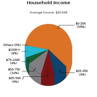 Census Tract / block: 13.04 / 4 Year: 2018 Household Population Population by Age Count: 5,585 0 - 11 Estimate Current Year: 5,978 12 - 17 Estimate in 5 Years: 7,845 18 - 24 12.09% Growth Last 5 Years: 11.94% 25 - 64 57.37% Growth Last 10 Years: -139.39% 65 - 74 6.68% 75+ Household Size Household Income Current Year: 2,374 0 - $25,000 58.8% Average Current Year: 2.35 $25,000 - $35,000 9.48% Estimate in 5 Years: 2,629 $35,000 - $50,000 8.97% Growth Last 5 Years: 3.92% $50,000 - $75,000 10.49% Growth Last 10 Years: -1.75% $75,000 - $100,000 4.42% Male Population: 50.99% Above $100,000 7.83% Female Population: 49.01% Average Household Income: $20,648 Married People: 31.86% Unmarried People: 68.14% Housing Median Mortgage Payments Home Values Under $300: 23.15% Below $100,000: 44.3% $300 - $799: 17.95% $100,000 - $150,000: 44.8% $800 - $1,999: 58.89% $150,000 - $200,000: 5.54% Over $2,000: 0% $200,000 - $300,000: 5.37% Median Home Value: $105,100 $300,000 - $500,000: 0% Unit Occupied Owner: 25.11% Above $500,000: 0% Median Mortgage: $752