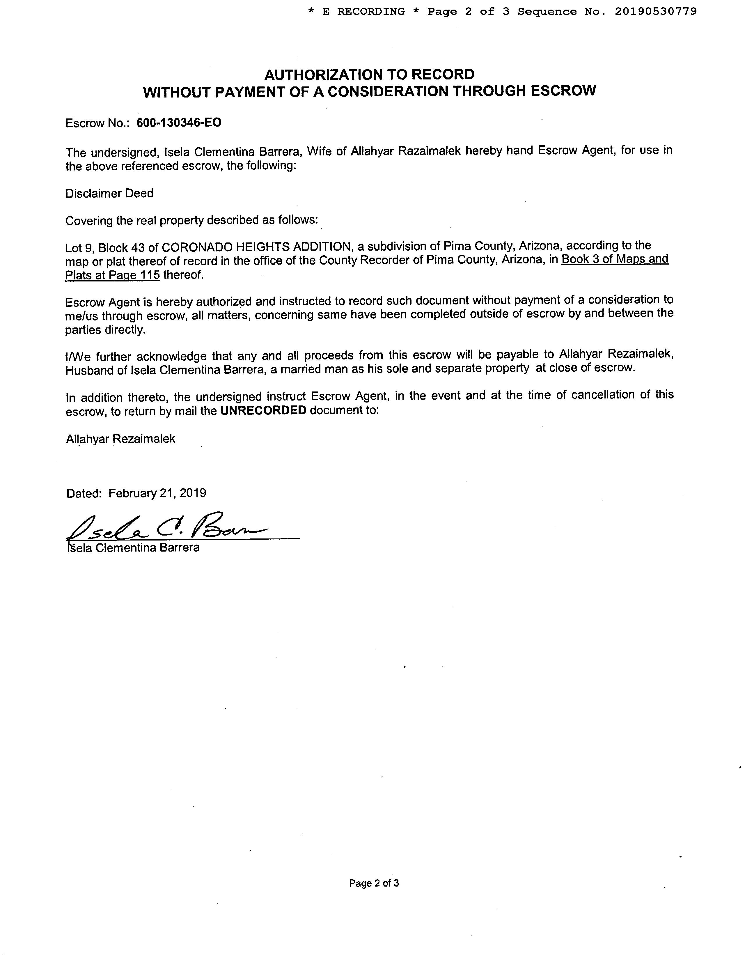 Deed Type : Disclaimer Deed