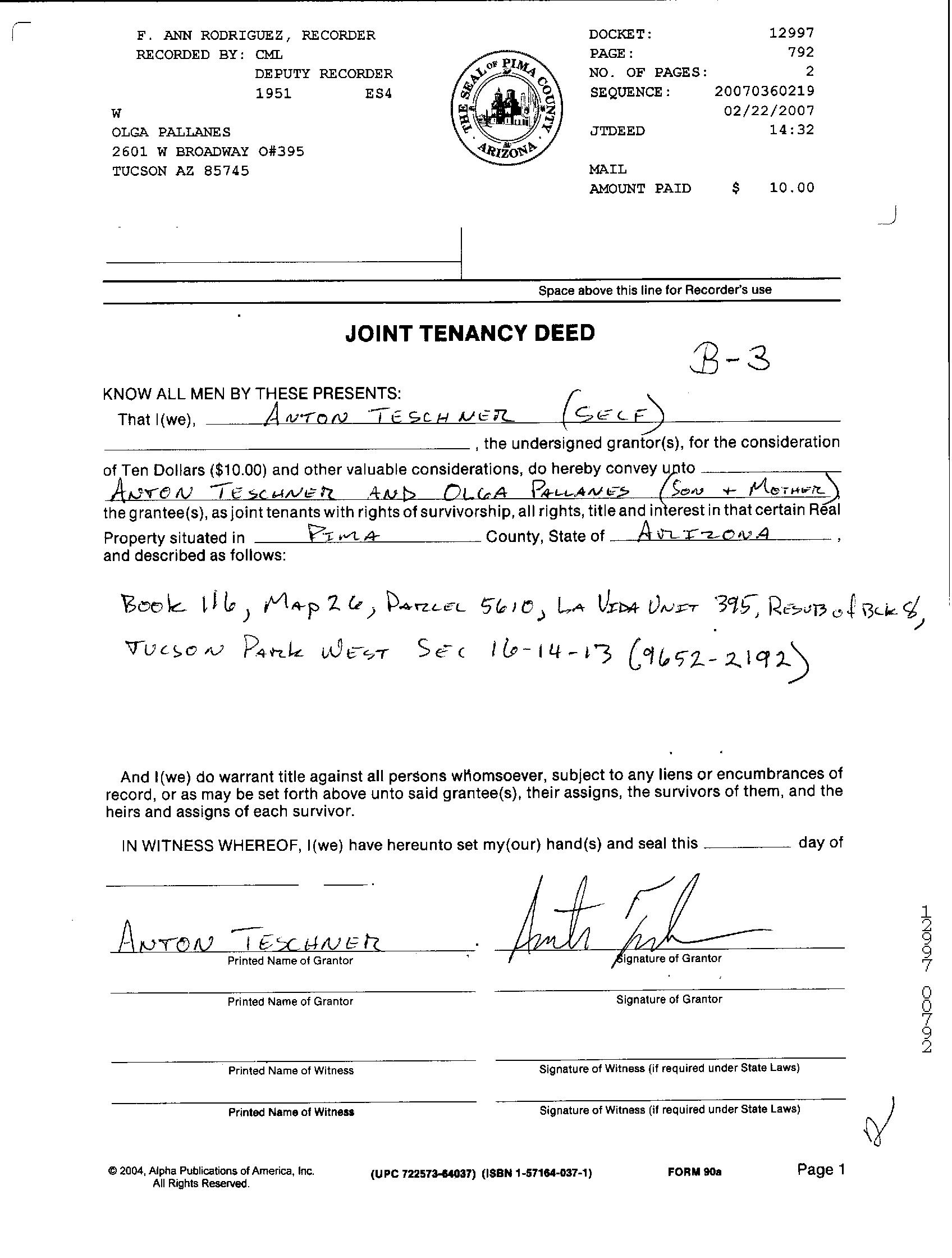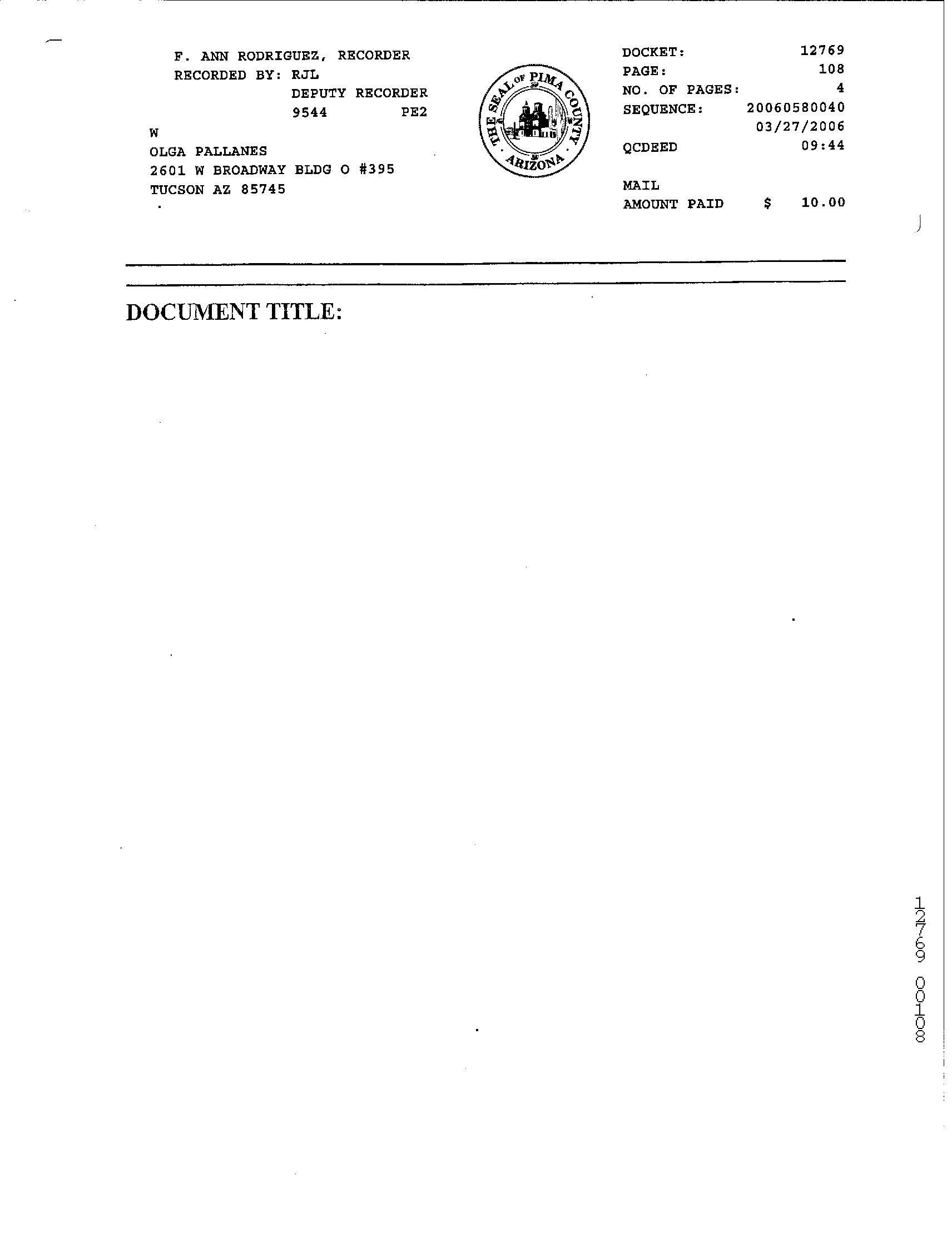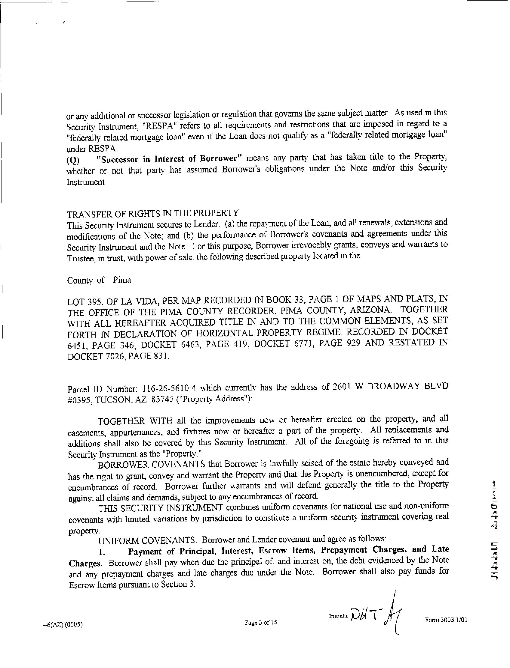 Subject Property : 2601 W Broadway Blvd # 395 Tucson AZ 85745