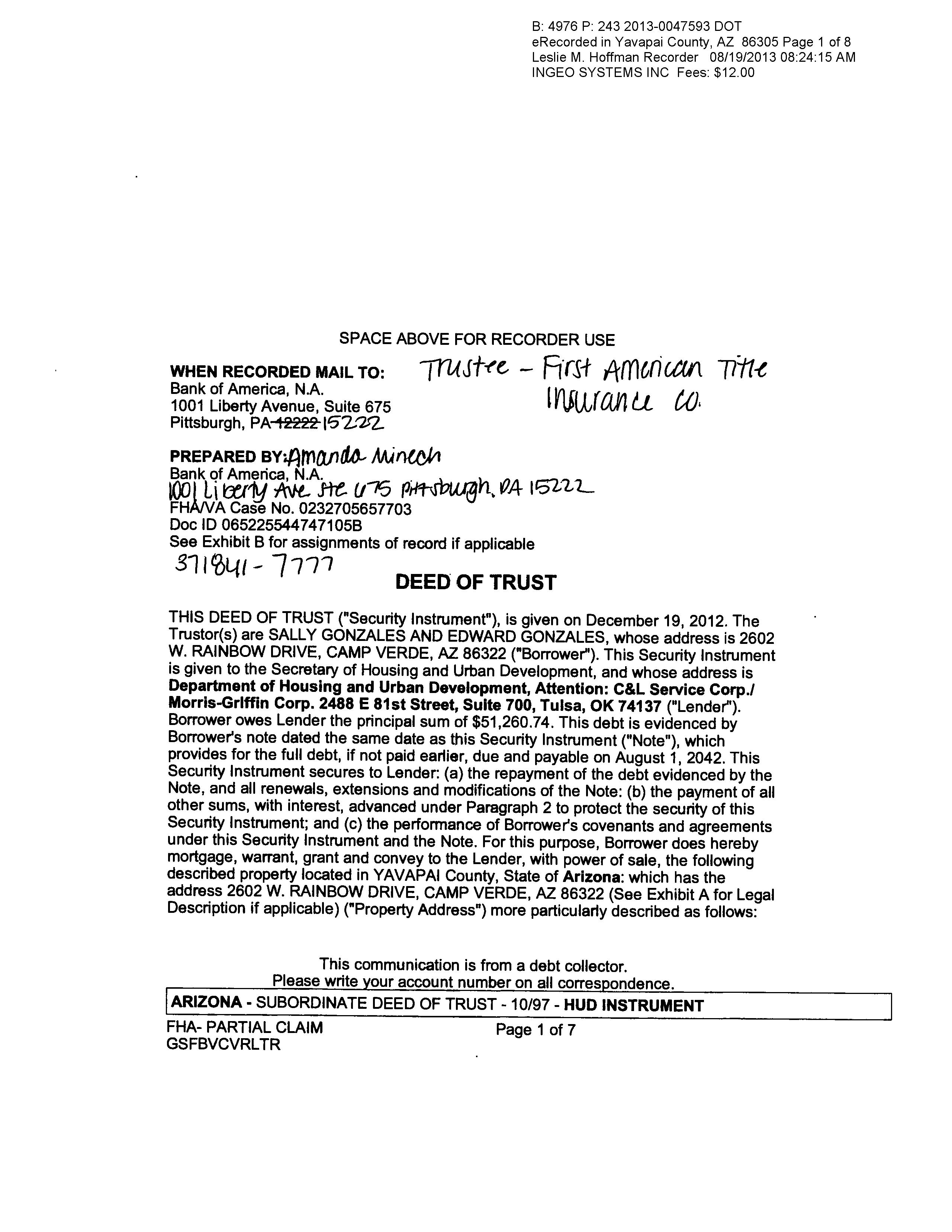 + FIRST AMERICAN TITLE, FC0, JSTI YAVAPAI (YV), AZ