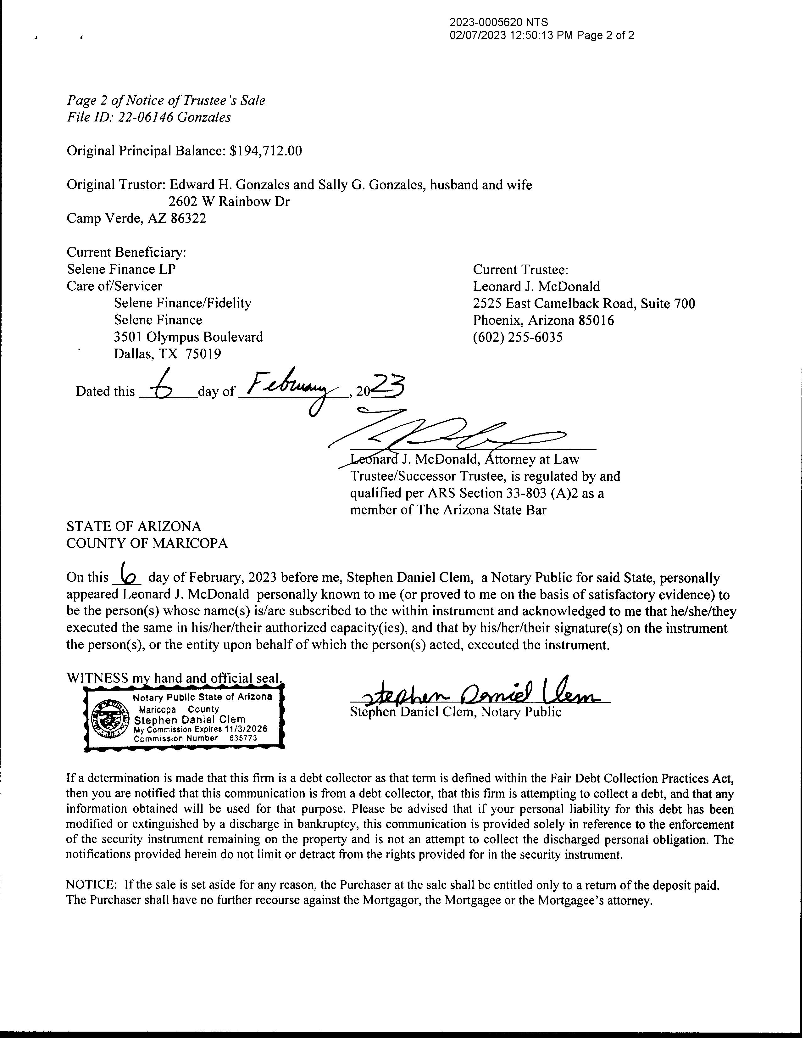 YAVAPAI (YV), AZ Document:DOT SLE 2023.5620 Page:2 of 2 Printed on:3/9/2023 4:03 PM Branch :FC0 User :JSTI