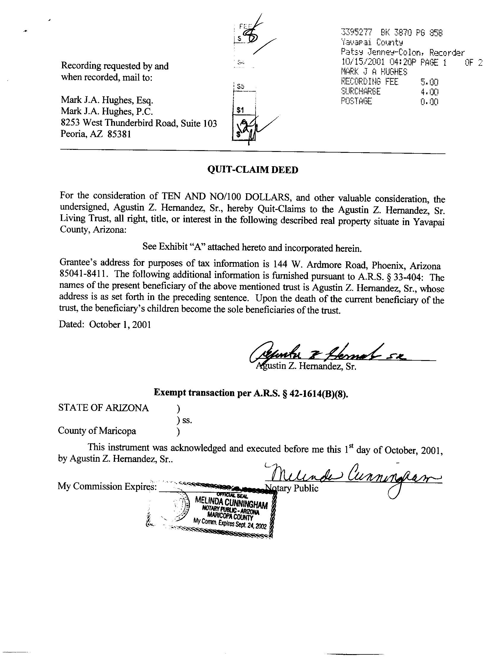 OWNER: HERNANDEZ AGUSTIN Z SR LIVING TRUST