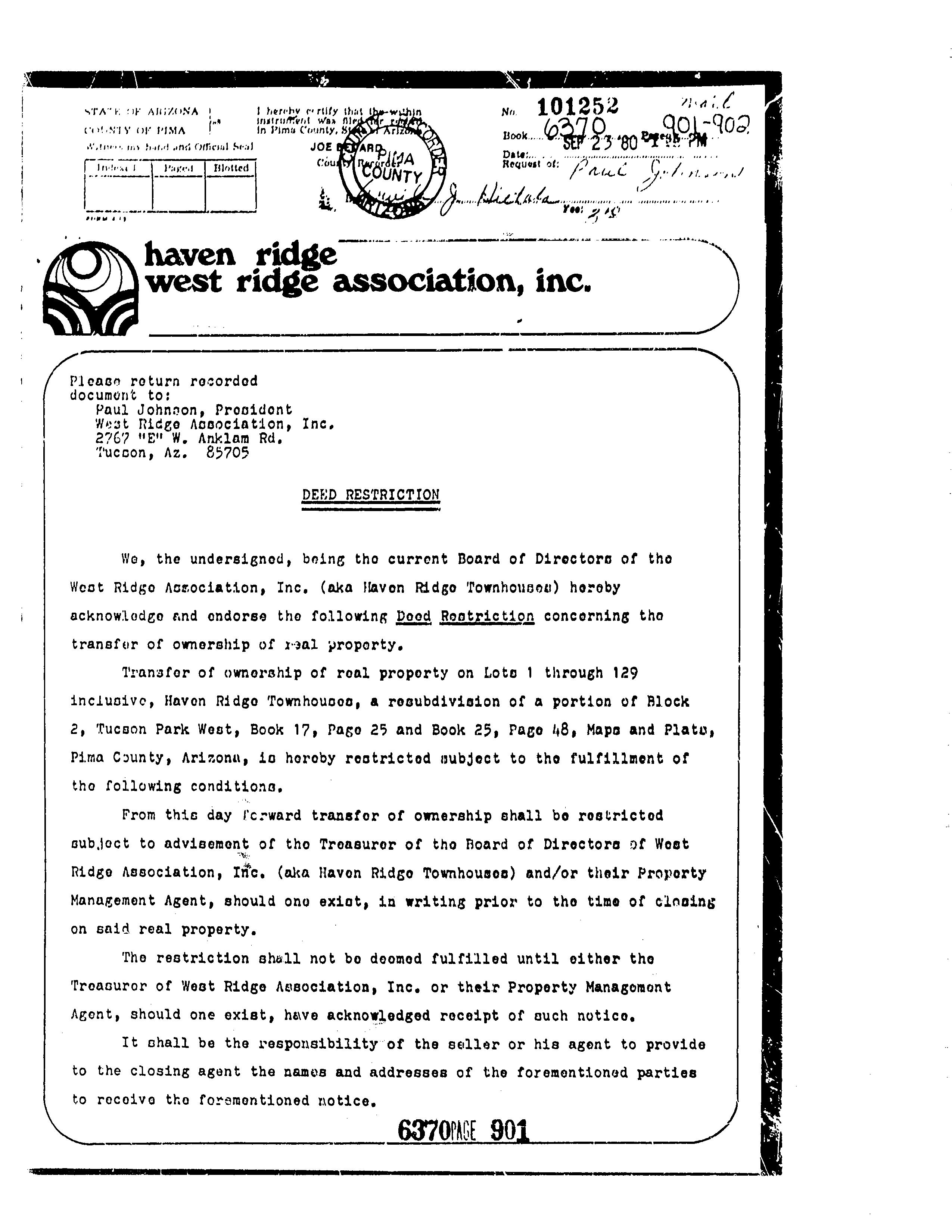 ©2021 First American Financial Corporation and/or its affiliates. All rights reserved. | NYSE: FAF 05252610821 COVENANTS, CONDITIONS & RESTRICTIONS prepared for : First American Title Insurance Company, and the operating divisions thereof, make no express or implied warranty respecting the information presented and assume no responsibility for errors or omissions. First American, the eagle logo, First American Title, and firstam.com are registered trademarks or trademarks of First American Financial Corporation and/or its affiliates.