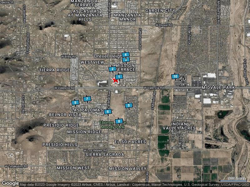 Hospitality Name Address Telephone Distance (Miles) Hostel Ink Clothing Company 404 W Mossman Rd Tucson Az (520) 867-6332 3.11 Sewalio Golf Club 5655 W Valencia Rd Tucson Az (520) 838-6623 3.49 Pascua Yaqui Tribe Charitable Organization 5655 W Valencia Rd Tucson Az (520) 395-7926 3.49 Tohono O'odham Gaming Enterprise 7350 S Nogales Hwy Tucson Az (520) 294-7777 4.03 Organizations / Associations Name Address Telephone Distance (Miles) Santa Cruz Lutheran Church 6809 S Cardinal Ave Tucson Az (520) 883-2937 0.44 Church Of Christ Mission Valley 3022 W Bilby Rd Tucson Az (520) 883-4688 0.53 Savior Abiding Free Lutheran 6000 S Cardinal Ave Tucson Az (520) 908-3316 0.56 Drexel Heights Baptist Church 2802 W Mossman Rd Tucson Az (520) 883-7710 0.57 Personal Services Name Address Telephone Distance (Miles) Desert Sports & Fitness 3030 W Valencia Rd # 272 Tucson Az (520) 908-3319 0.32 De Nail Spa 1656 W Valencia Rd # 110 Tucson Az (520) 908-8558 1.58 Southwest Pool & Spa Covers 445 E Teton Rd Tucson Az (520) 403-2342 3.88 Desert Sports & Fitness 3672 S 16th Ave Tucson Az (520) 791-7799 4.11 Shopping Name Address Telephone Distance (Miles) Dogwood Enterprises Inc 2820 W Valencia Rd Tucson Az (520) 883-4074 0.06 Walmart Inc. 2823 W Valencia Rd Tucson Az (520) 908-2556 0.08 El Herradero Meat Market 2770 W Valencia Rd Tucson Az (520) 658-9869 0.1 Am Pm Mini Market 2891 W Valencia Rd Tucson Az (520) 883-1078 0.11 Customer Name : Lisa Mrazek Customer Company Name : First American Title Insurance Company Prepared On : 03/07/2023 © 2023 CoreLogic. All rights reserved