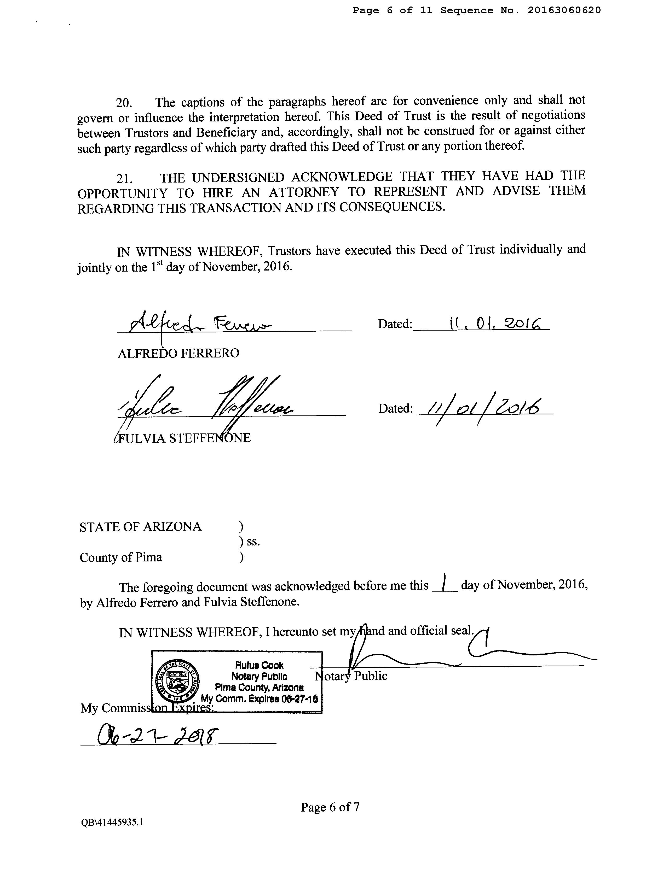 PIMA, AZ Document:DOT 2016.306.0620 Page:7 of 11 Printed on:8/16/2022 2:40 PM Branch :FC0 User :JSTI