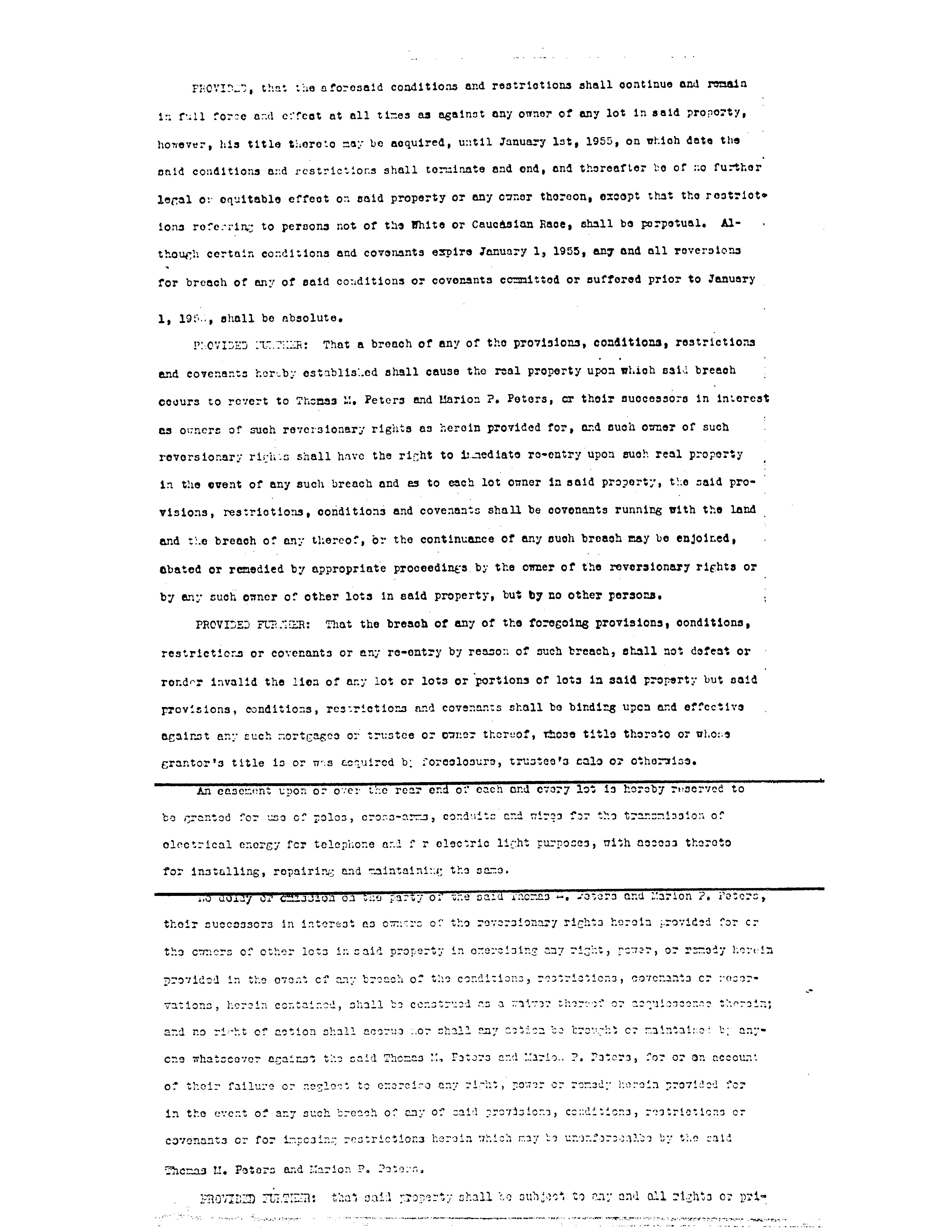 ConditionsCovenants,&Restrictions Thank you for the opportunity to be of service. Restrictions indicating a preference, limitation or discrimination based on race, color, religion, sex, handicap, familial status, or national origin are hereby deleted to the extent such restrictions violate 42 USC 3604(c). This information is furnished without fee and without benefit of a complete title search. No liability is assumed by First American Title or Title Security. If it is desired that liability be assumed, you may apply for a policy of title insurance with First American Title Insurance Company.