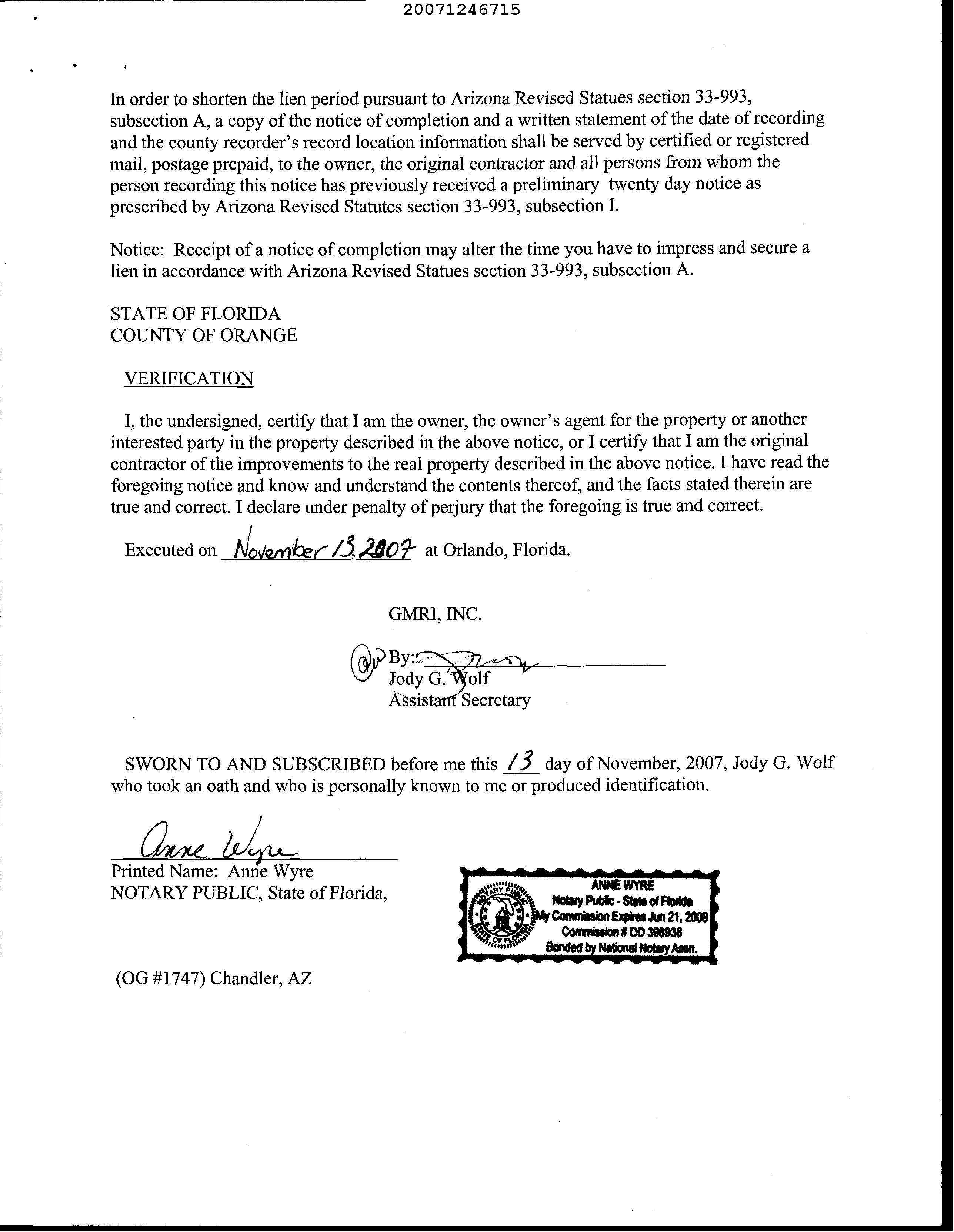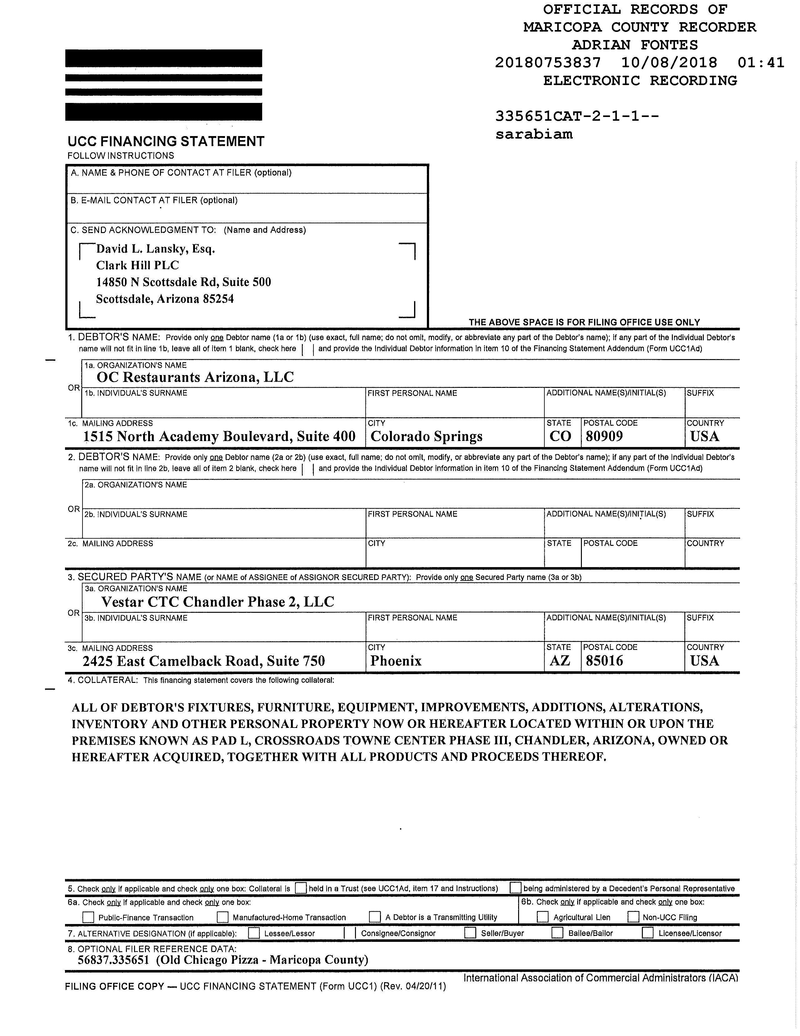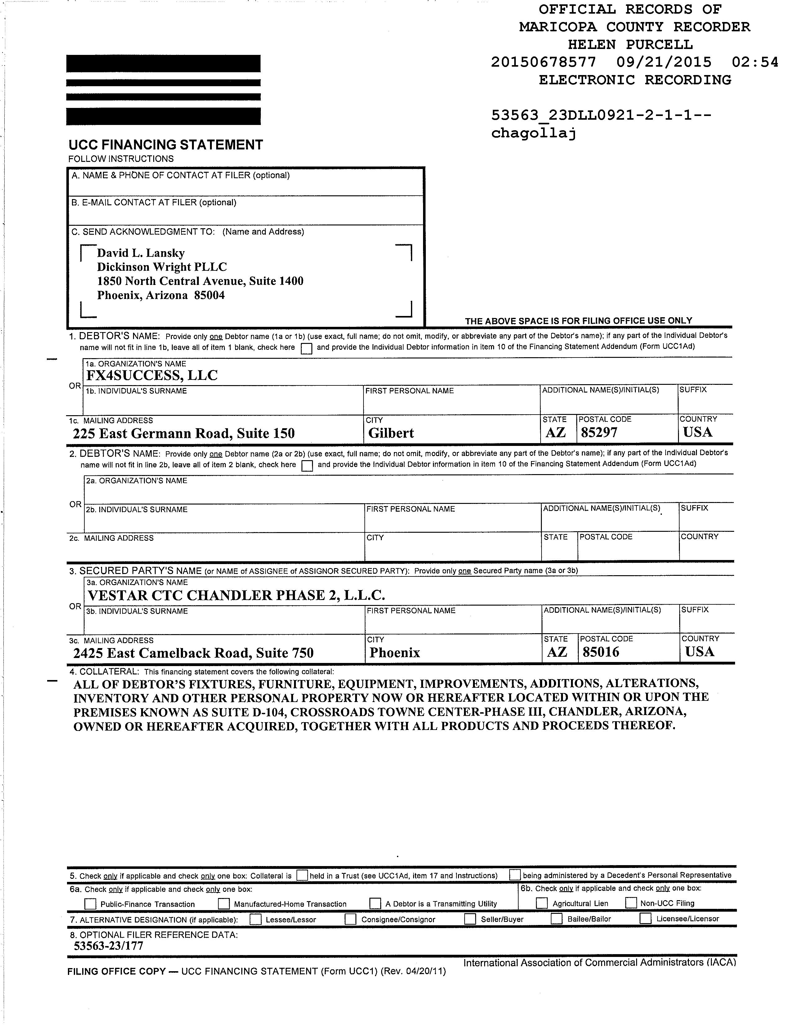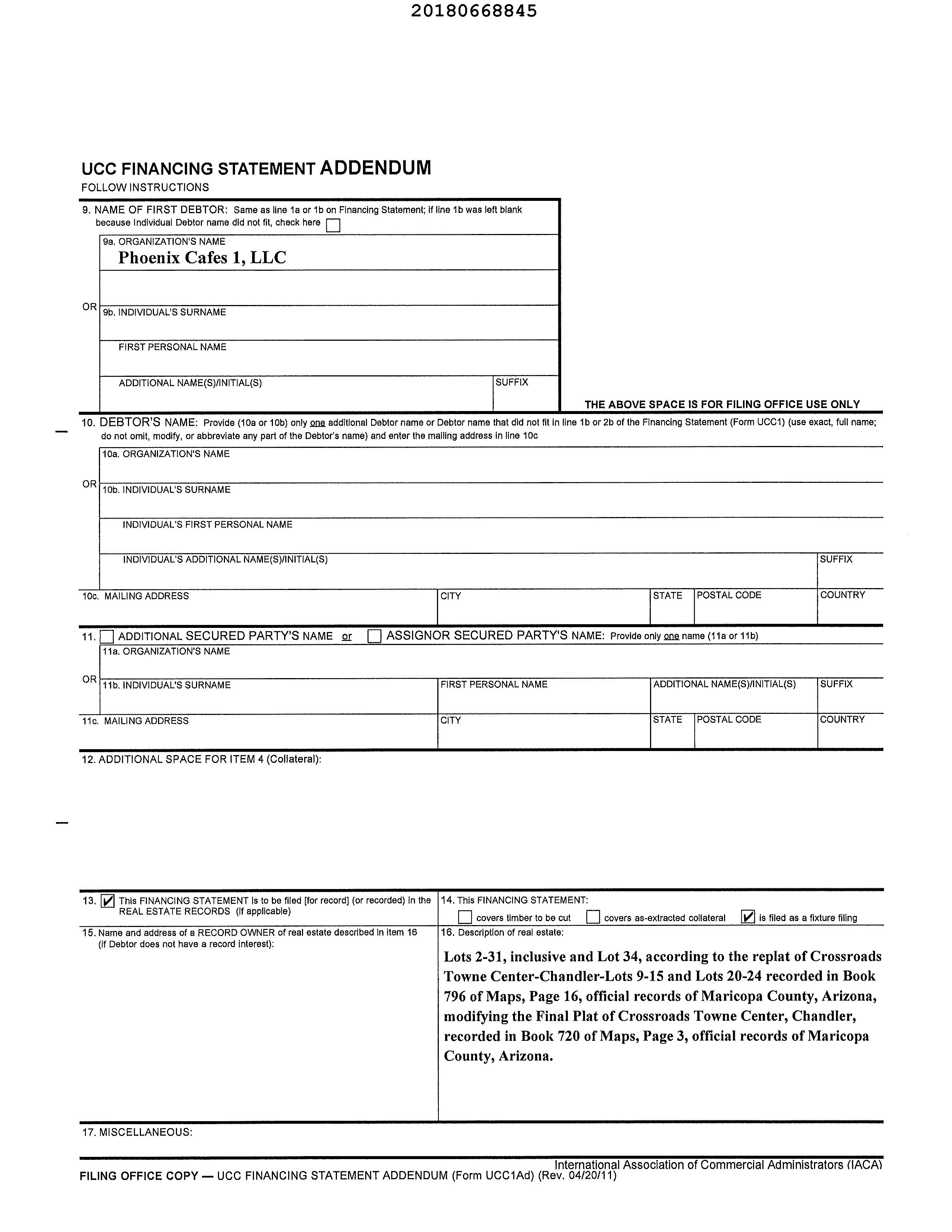 Legal Description : Lot 8 Crossroads Towne Center Chandler Mcr 720-03