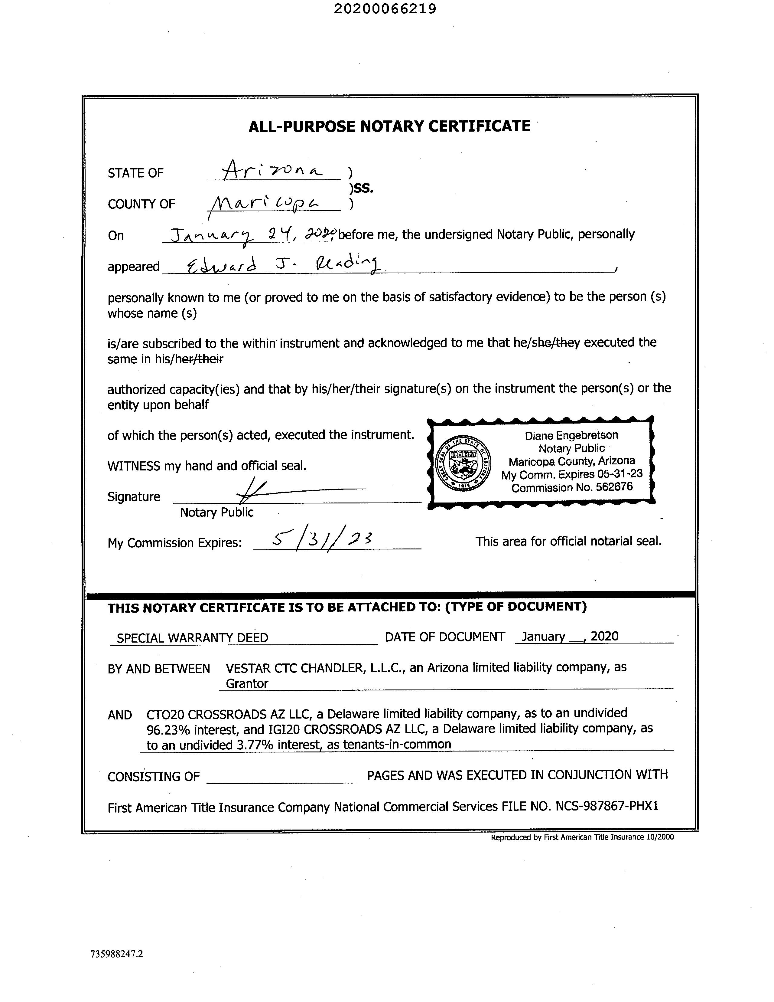 Owner Name : Cto20 Crossroads Az Llc & Igi2