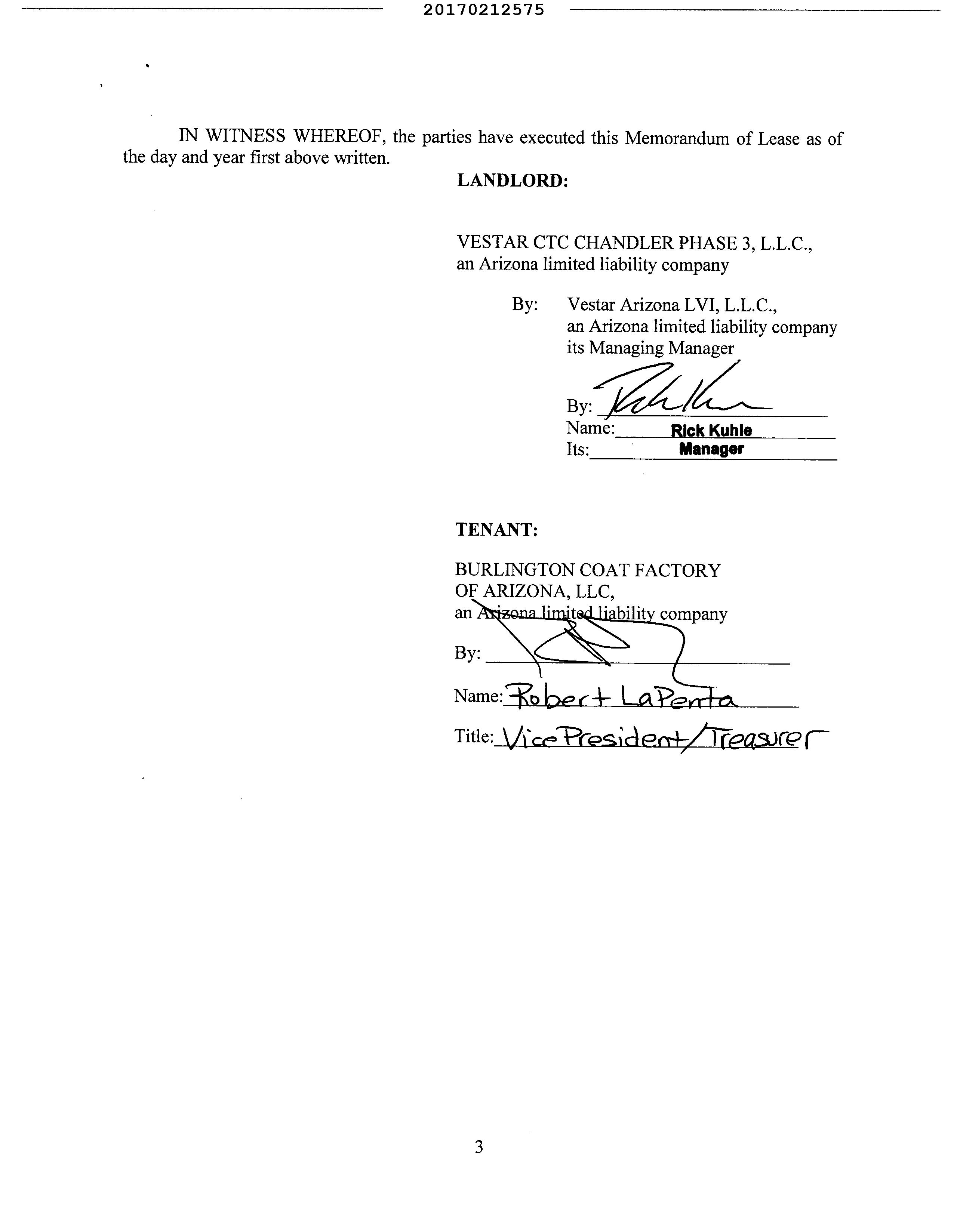 OWNER: VESTAR CTC CHANDLER PHASE 1 LLC