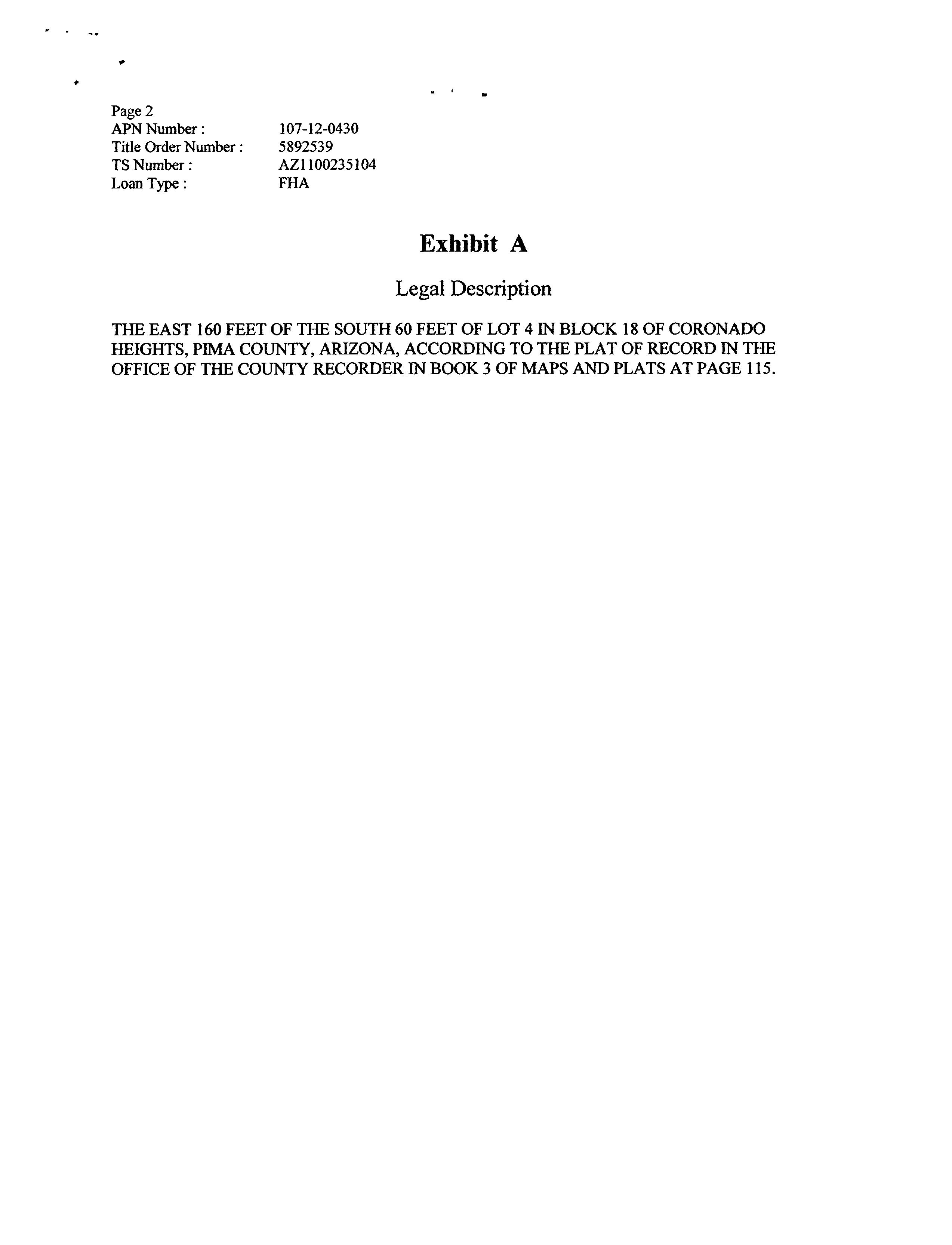 Subject Property : 2937 N Los Altos Ave Tucson AZ 85705