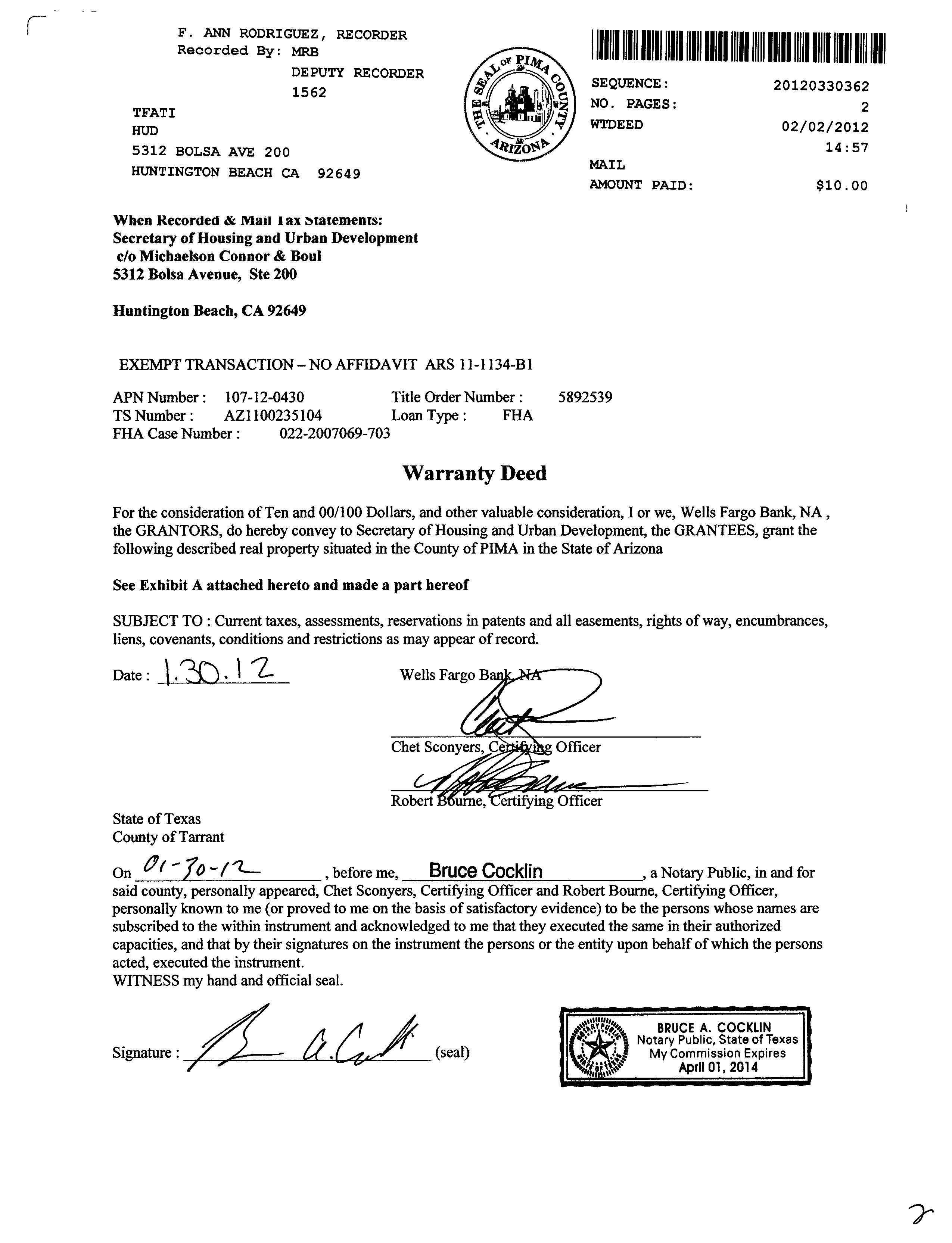 Recording/Sale Date : 05/25/2012 / 05/07/2012