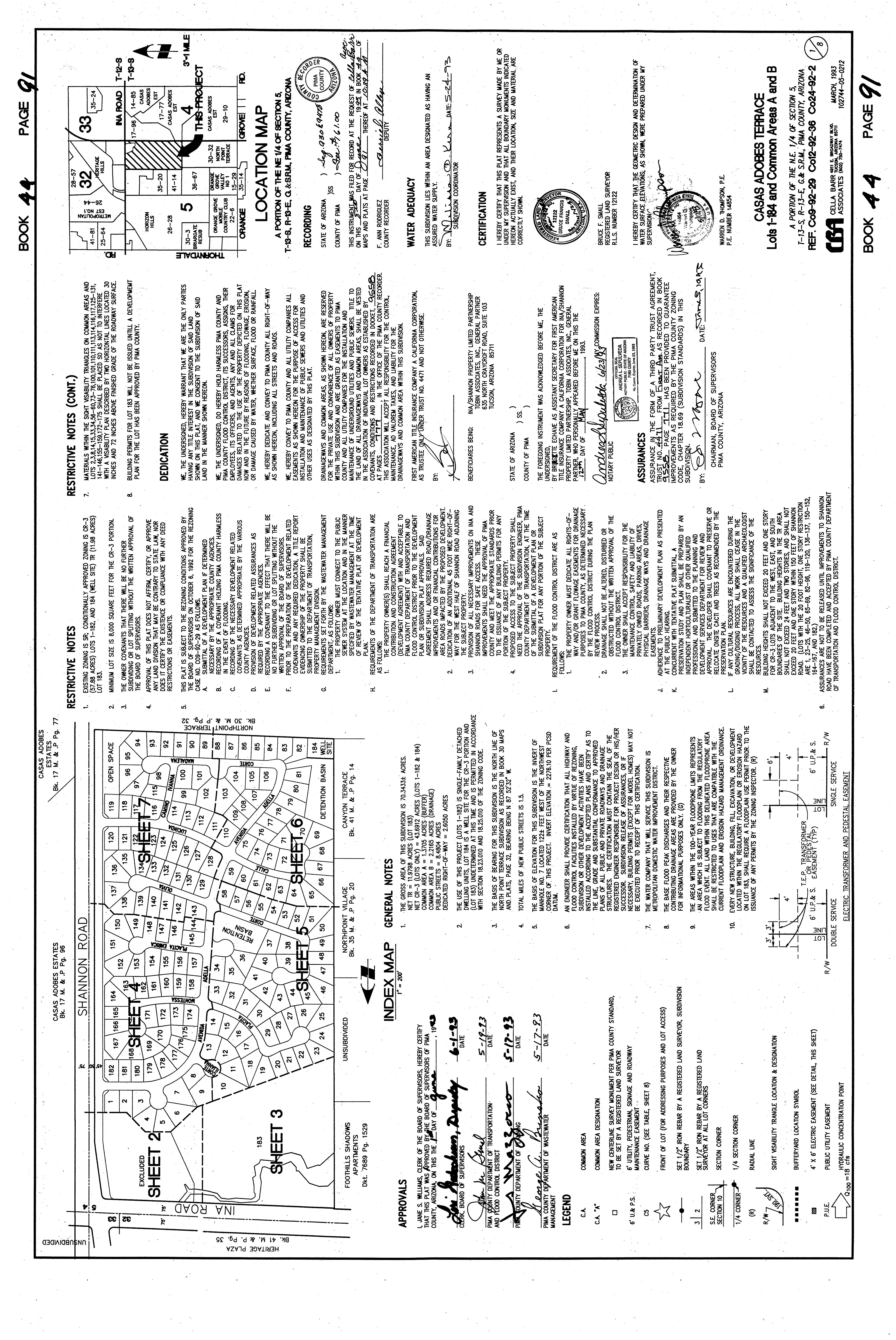 Vesting Codes : / / Joint Tenants Owner OccupiedIndicator : O Location Information Legal Description : Casas Adobes Terrace Lot 0134 County : Pima, Az APN : 101-04-8300 Census Tract / Block : 46.27 / 2 Subdivision : Casas Adobes Terrace Township-Range- Sect : 13S-13E-5 Map Reference : 05-13S-13E Legal Book/Page : 44-91 School District : Flowing Wells Legal Lot : 134 Munic/Township : Flowing Wells Market Area : 11 Last Market Sale Information Recording/Sale Date : 09/01/1995 / 04/00/1995 Transfer Document # : 133291 Sale Price : $147,437 1st Mtg Amount/Type : $140,065 / Cnv Document # : 10120-1764