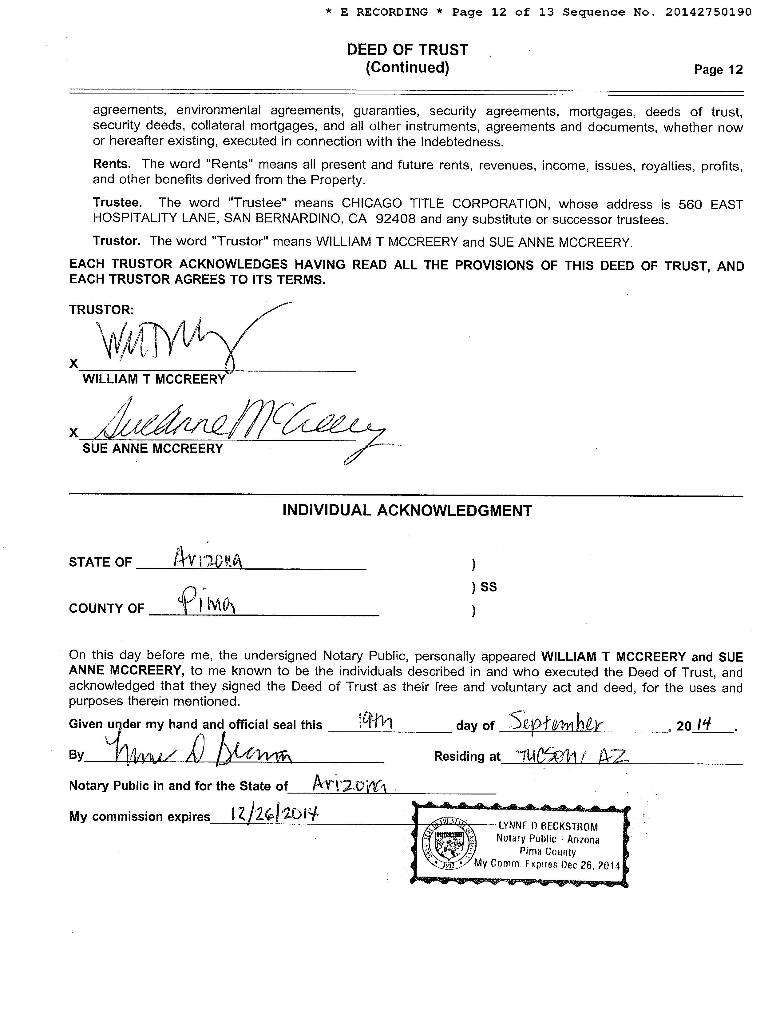 Owner Name : Mc Creery William T / Mc Creery Sue Anne Mailing Address : 2941 W Corte Olivia, Tucson AZ 85741-2939 C017